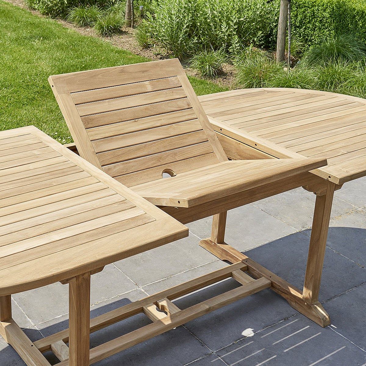 Set da esterno con tavolo allungabile in teak per 8/10 persone