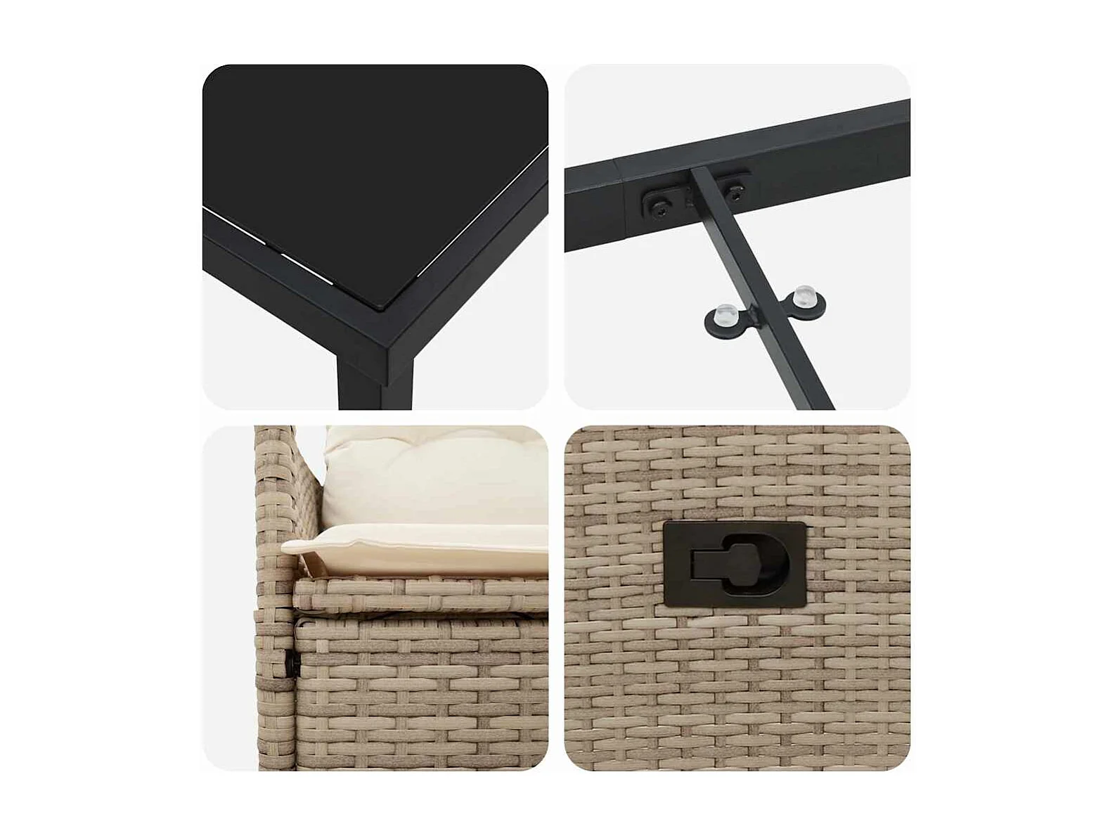 Set da pranzo da giardino composto da 3 pezzi con cuscini in polyrattan beige