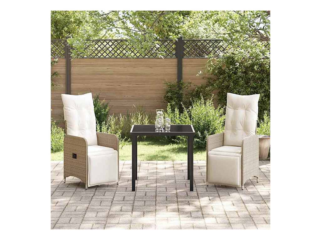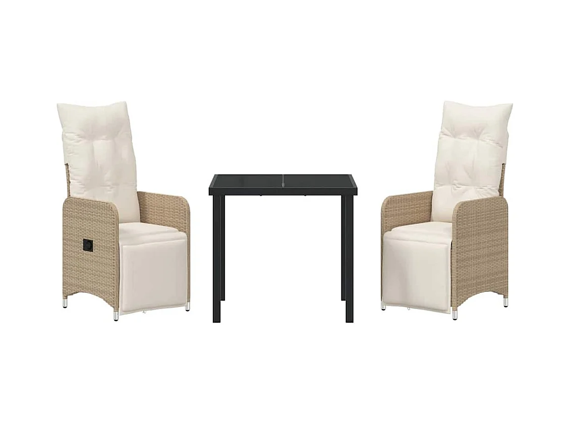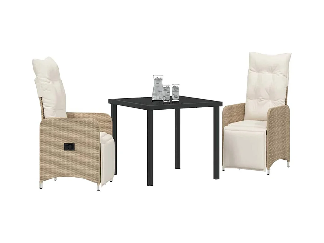 Set da pranzo da giardino composto da 3 pezzi con cuscini in polyrattan beige