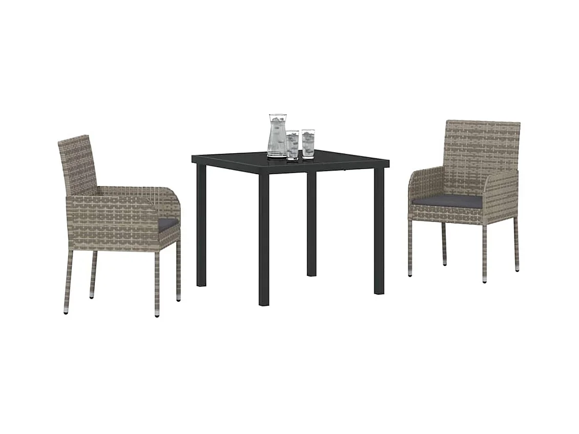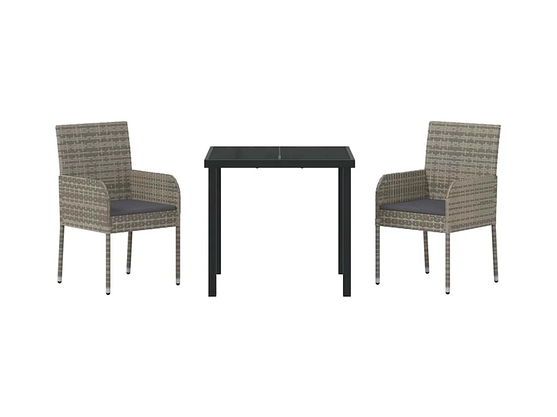 Set da giardino 3 pezzi con cuscini in polyrattan grigio