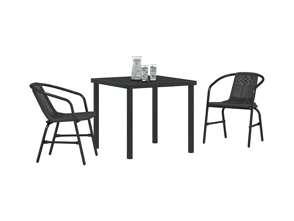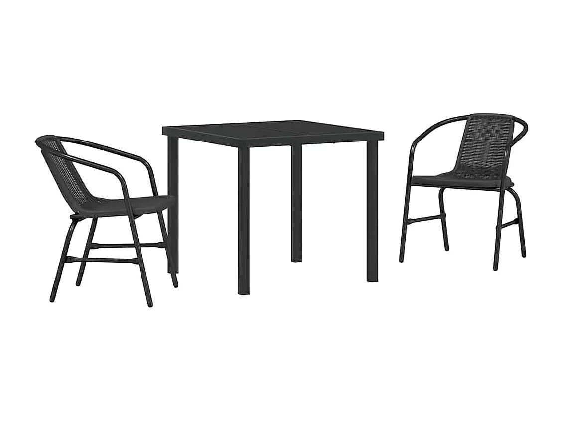 Set da pranzo da giardino in polyrattan nero da 3 pezzi
