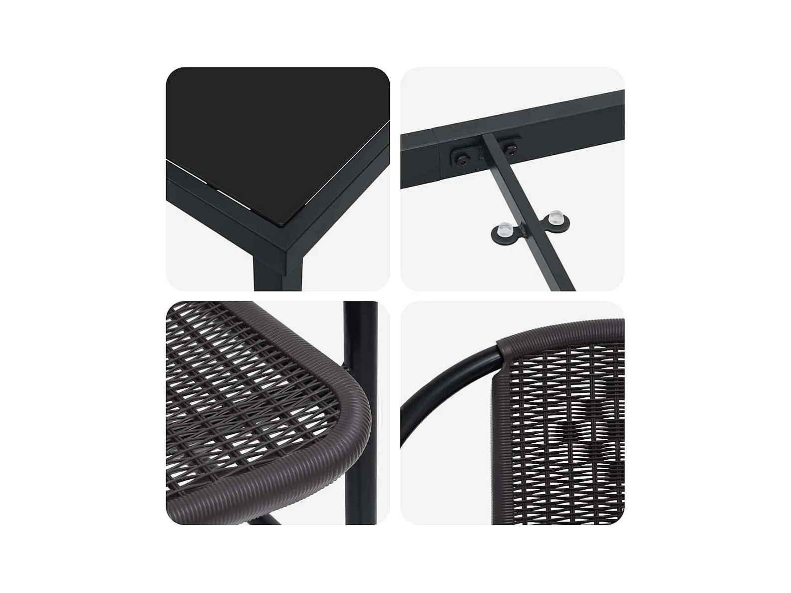 Set da giardino 3 pezzi in rattan, plastica, nero