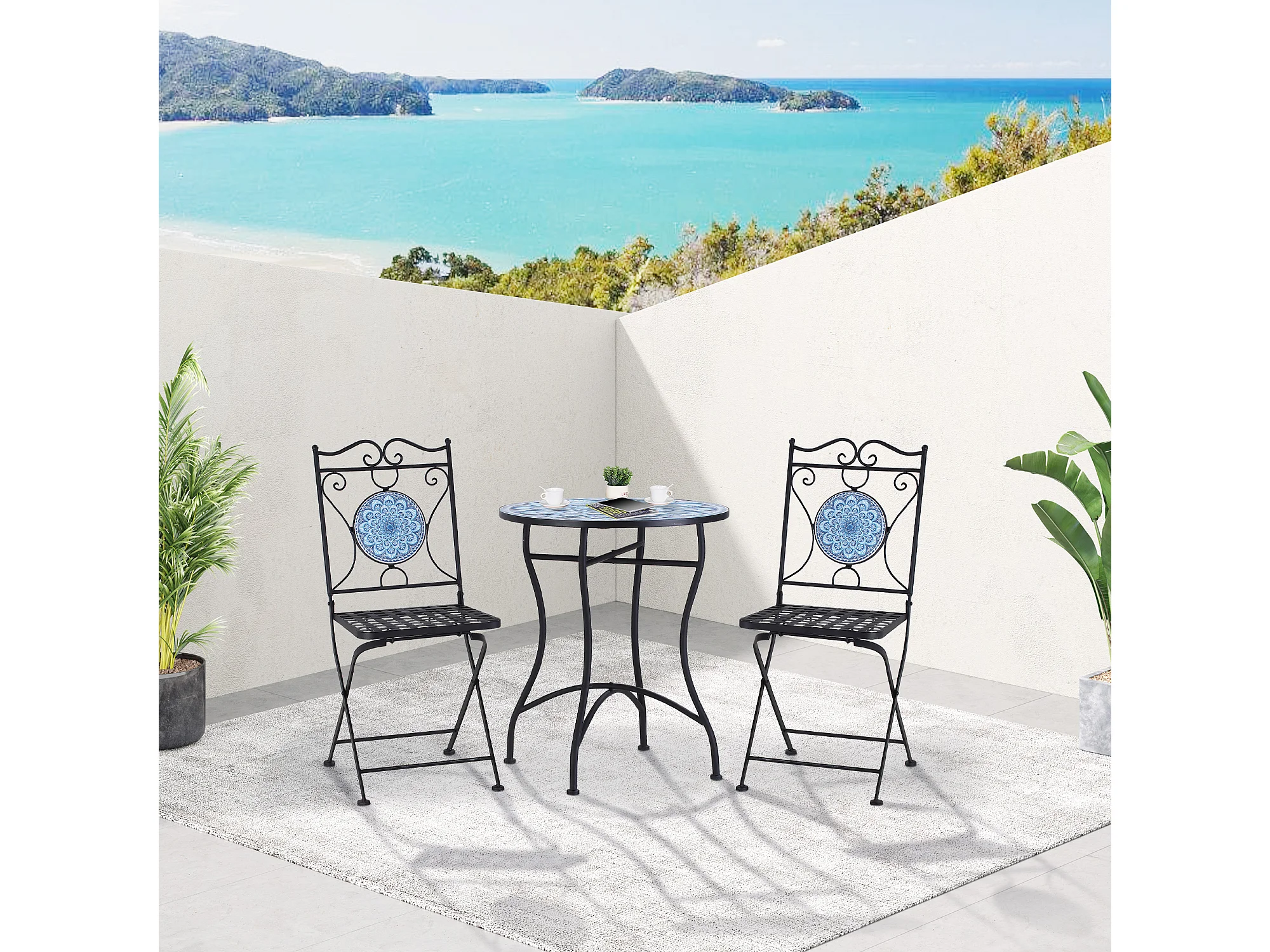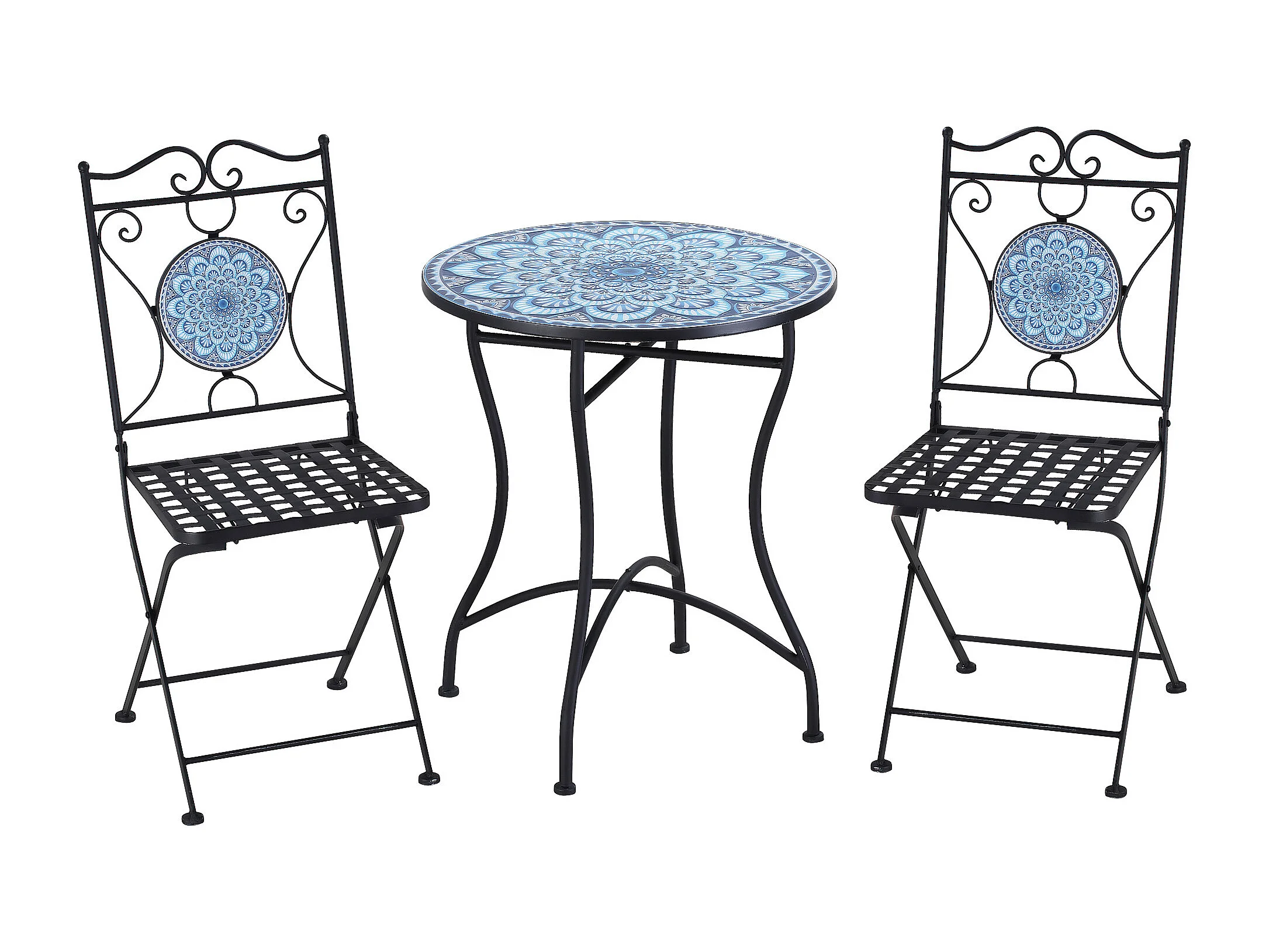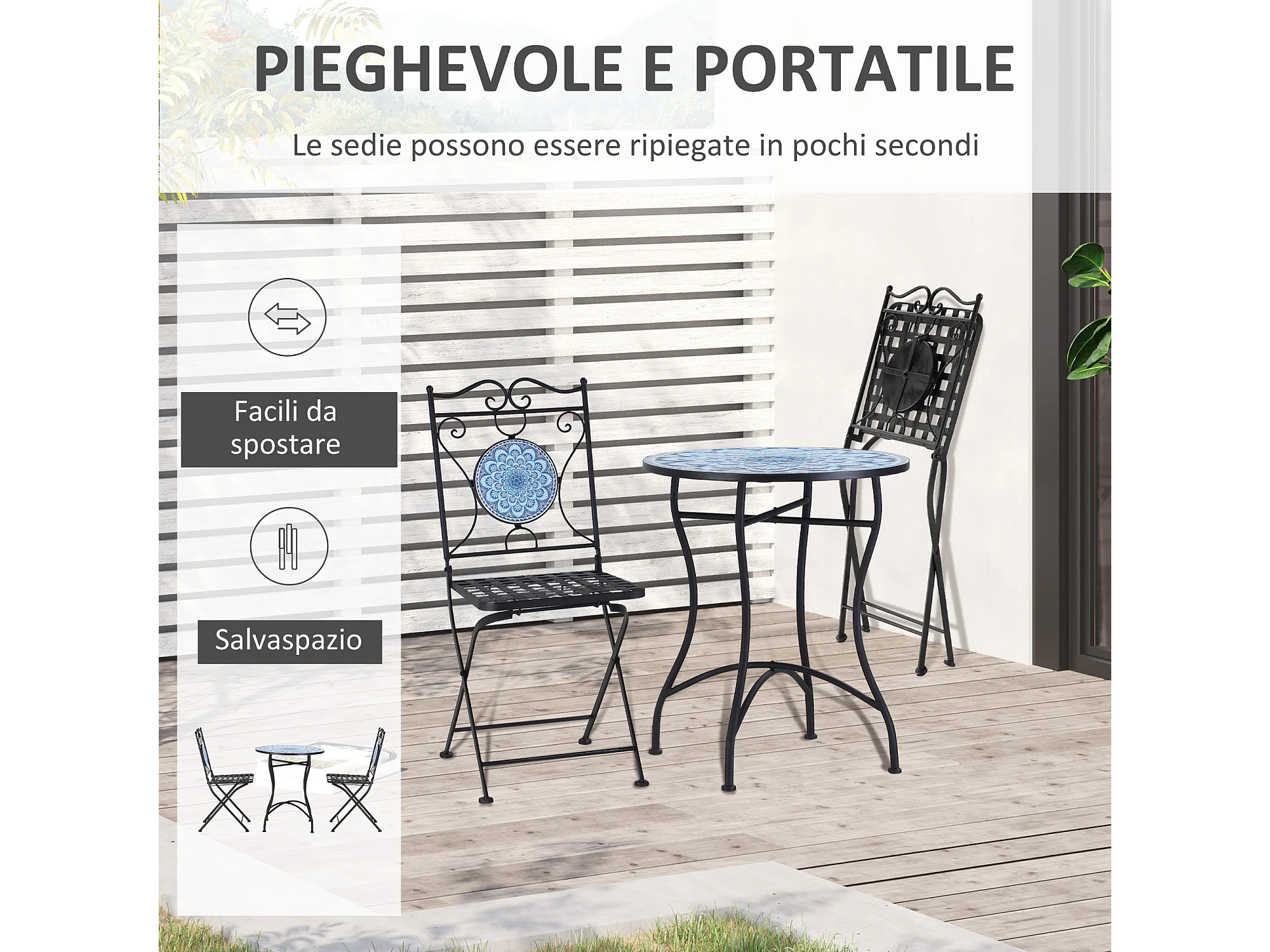 Set da giardino 3 pezzi tavolino 2 sedie pieghevoli e mosaico