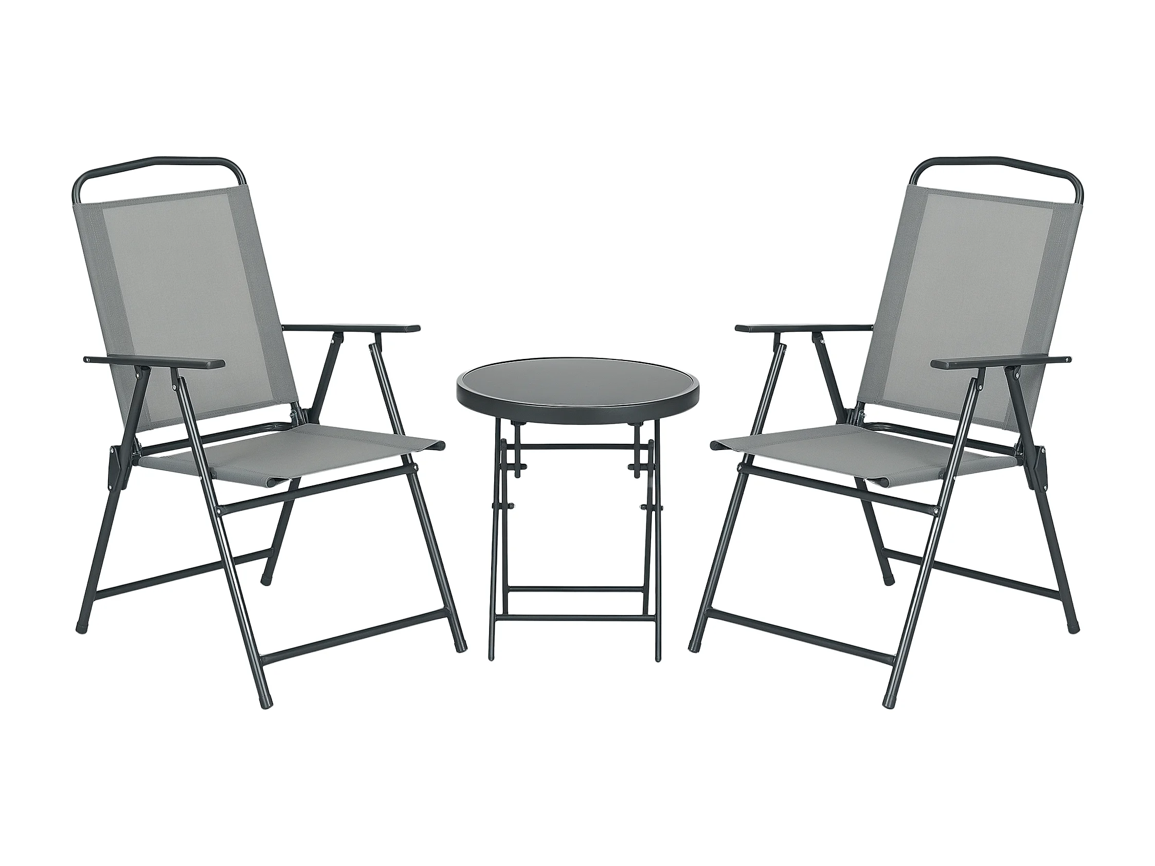 Set da giardino con un tavolino e 2 sedie pieghevoli grigio