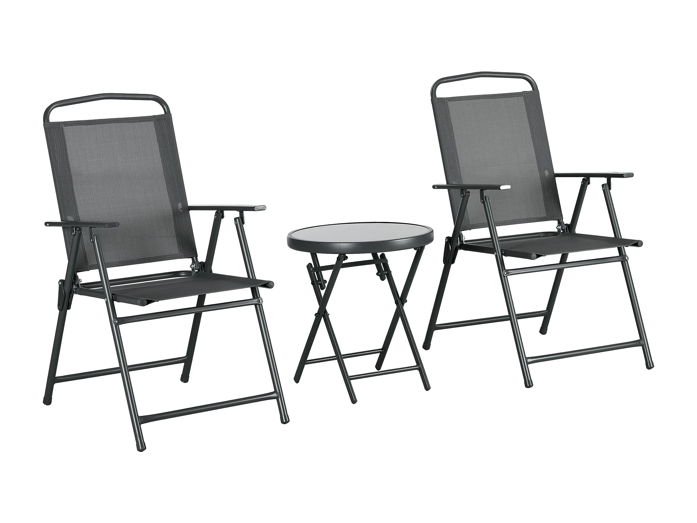 Set da giardino 3 pz con 2 sedie e tavolino da caffè grigio scuro