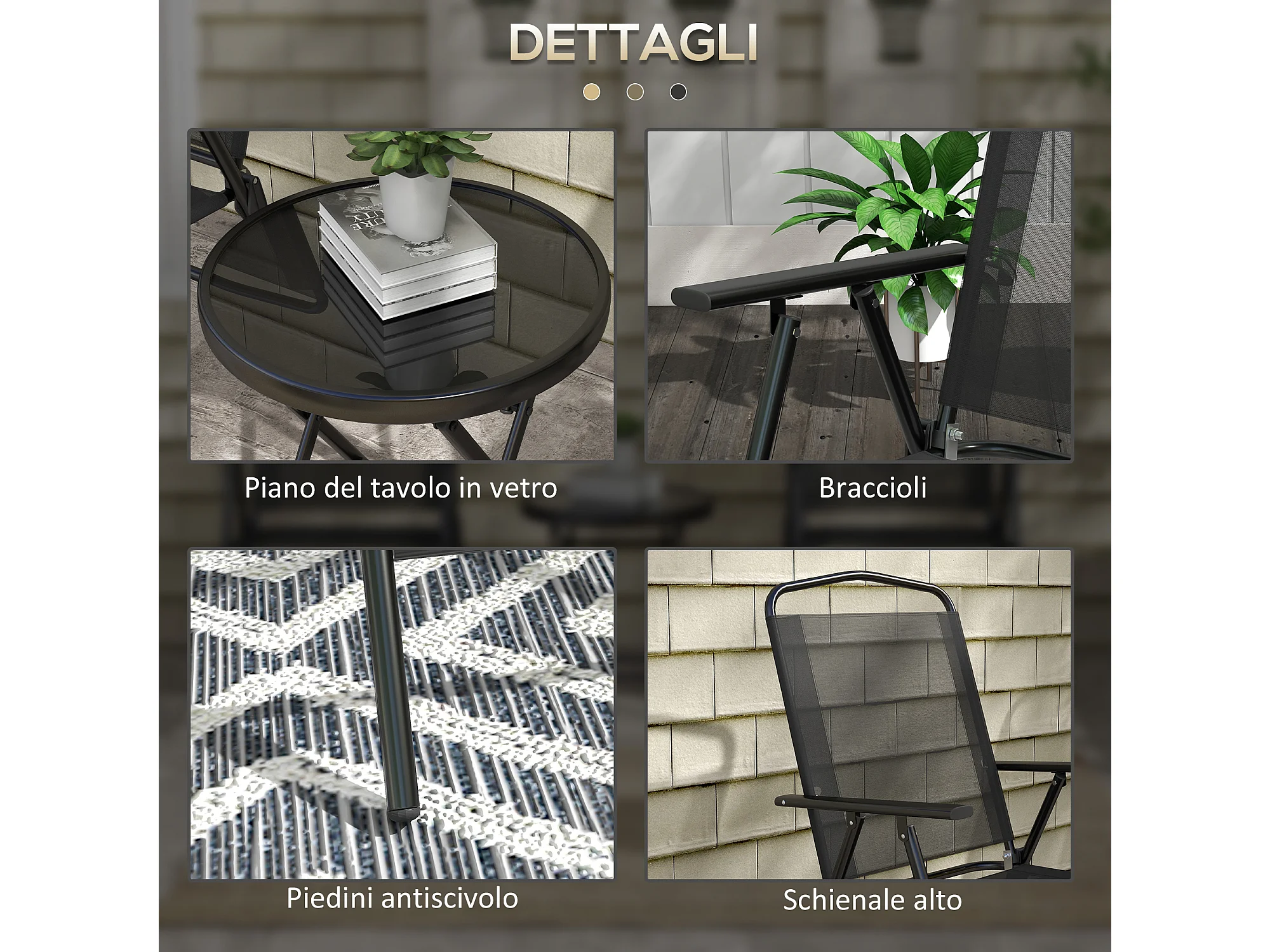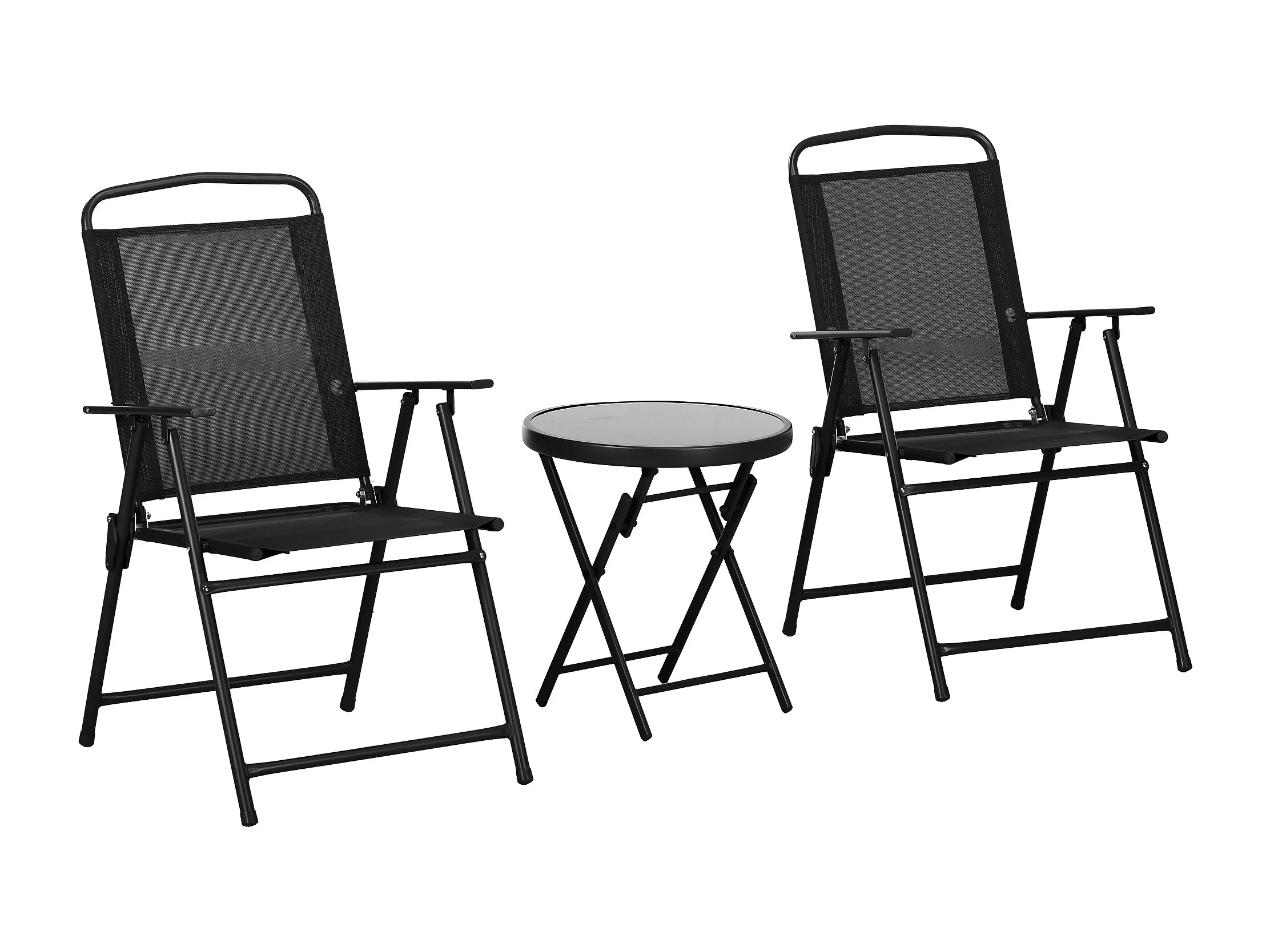 Set da giardino 3 pz con 2 sedie e tavolino da caffè nero
