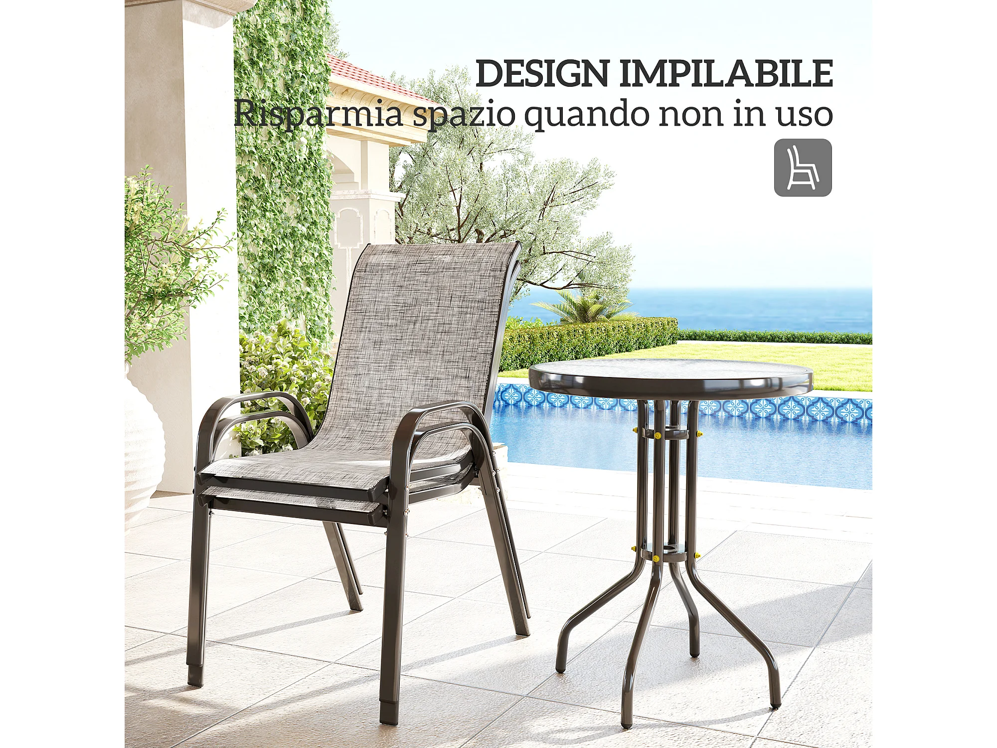 Set da giardino 3pz con 2 sedie da giardino e tavolino rotondo grigio