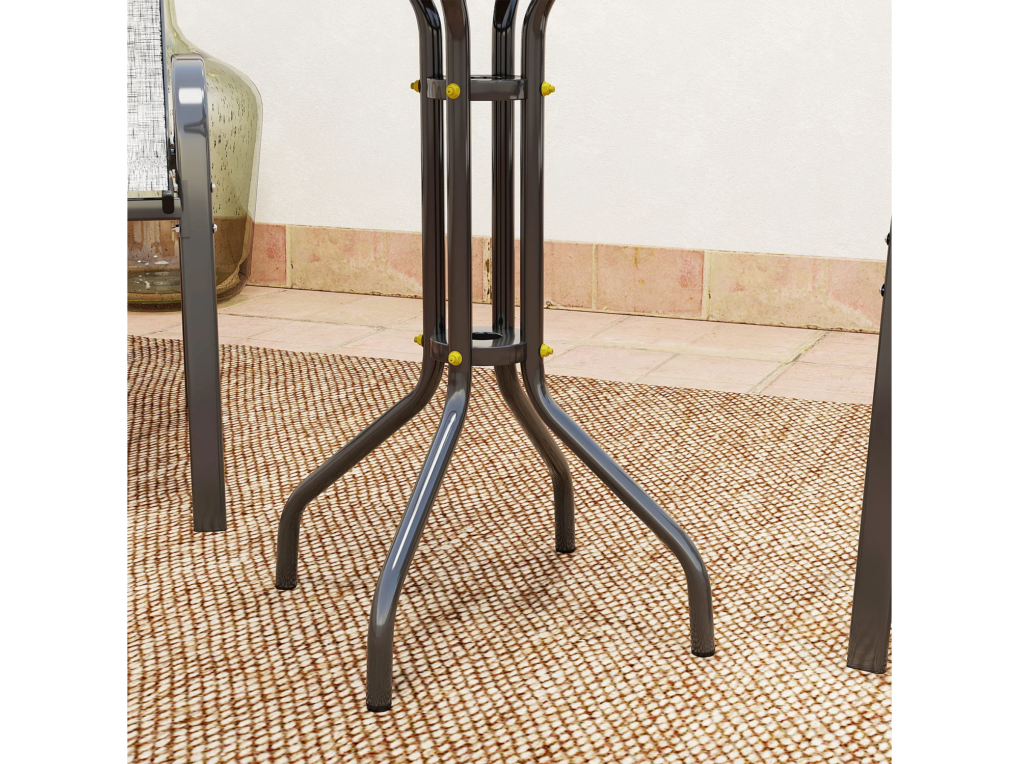 Set di tavolo e sedie da giardino rotondo in metallo