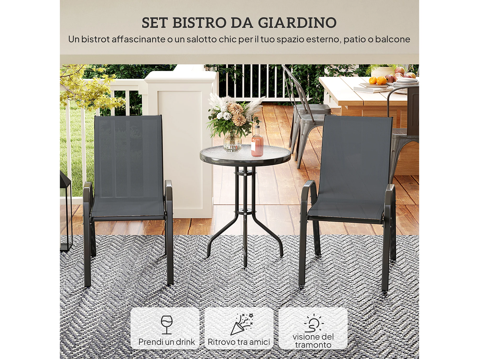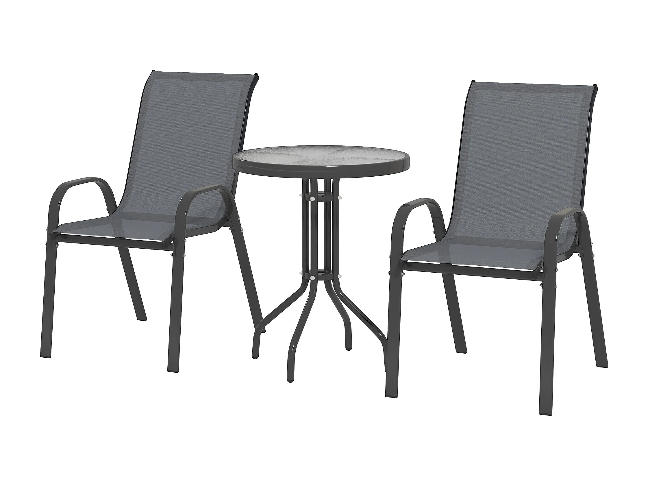 Set da giardino 3pz con 2 sedie e tavolino rotondo grigio scuro