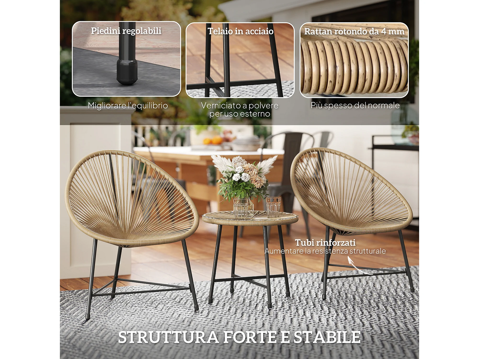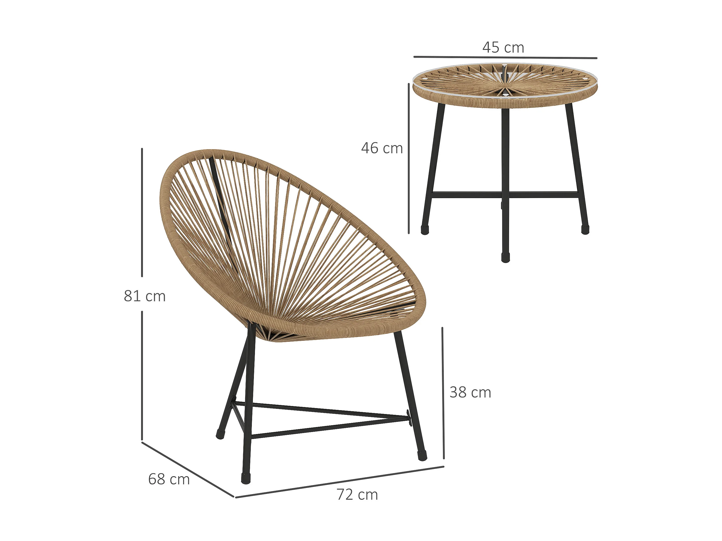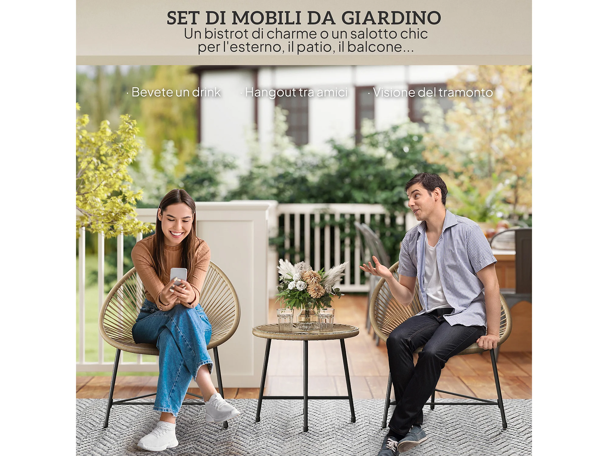 Set da giardino 3pz con 2 sedie ovali e tavolino nero e color legno
