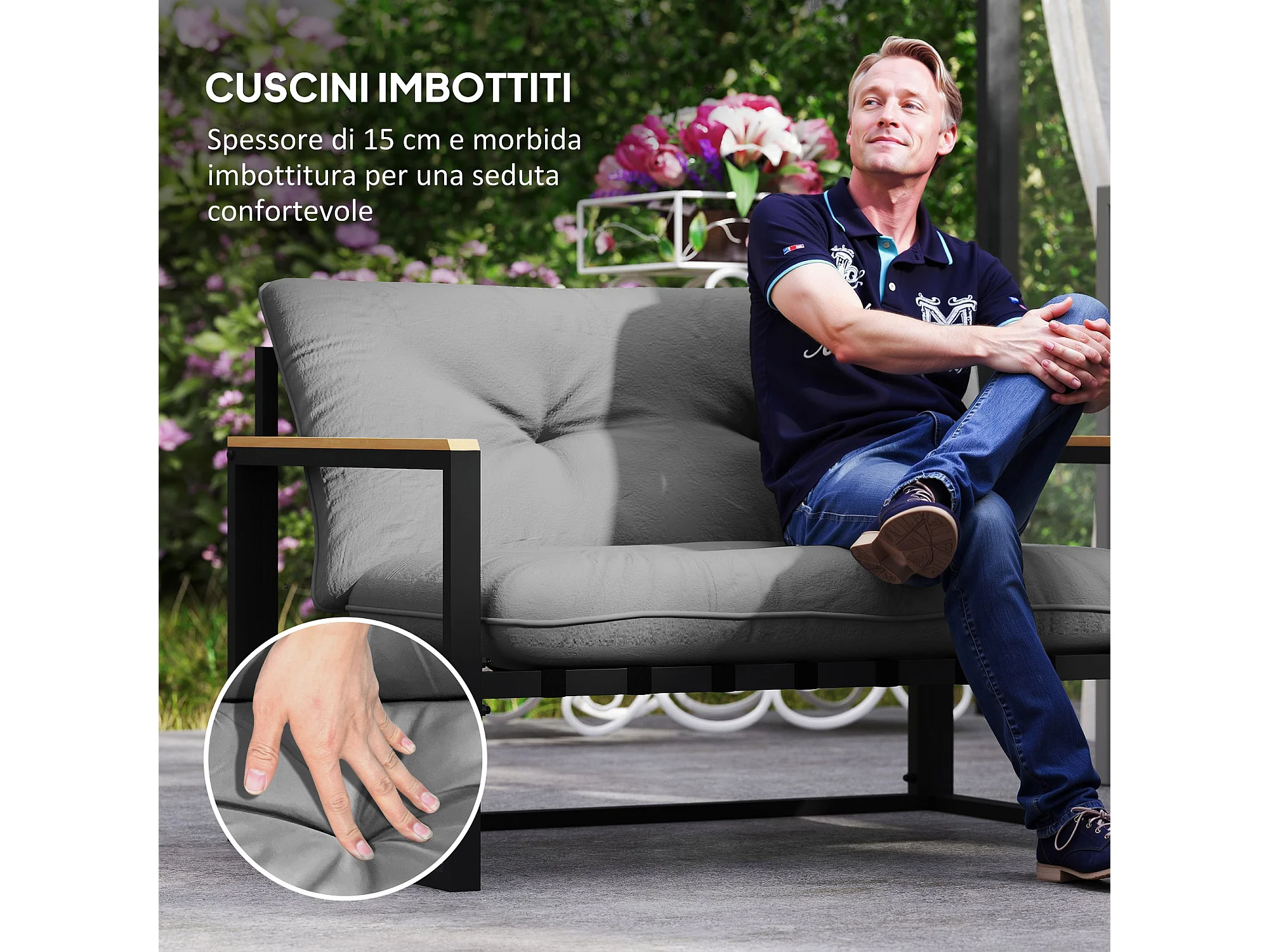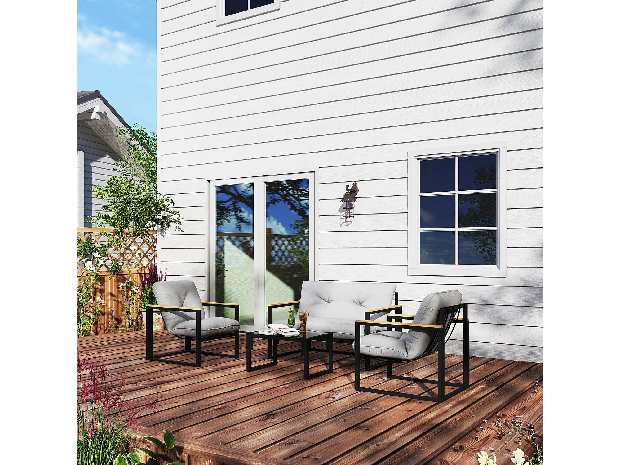 Set da giardino 4 pezzi con 2 sedie divanetto e tavolino grigio e nero