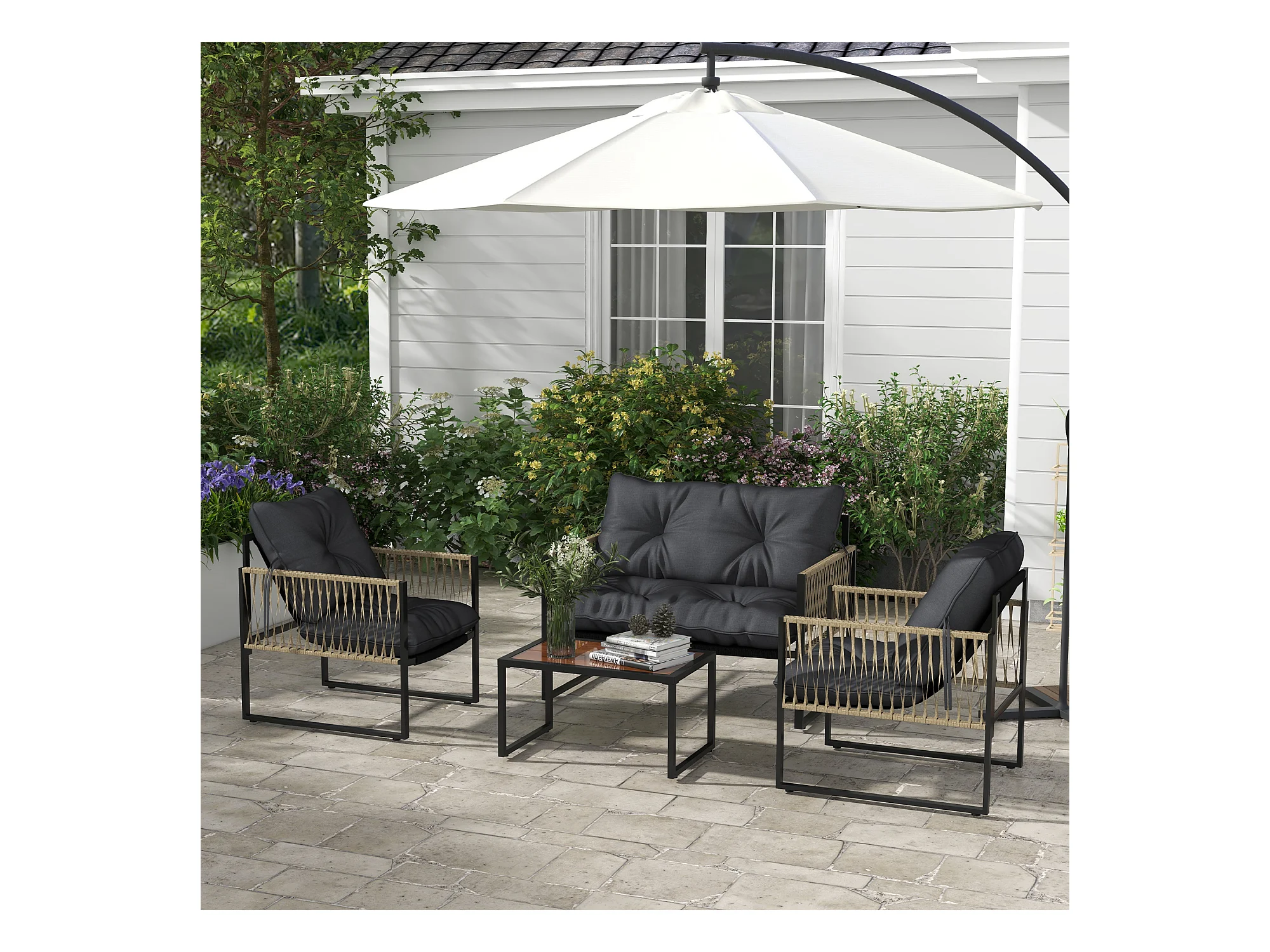 Set da giardino 4 pezzi in rattan con divanetto, 2 sedie e tavolino