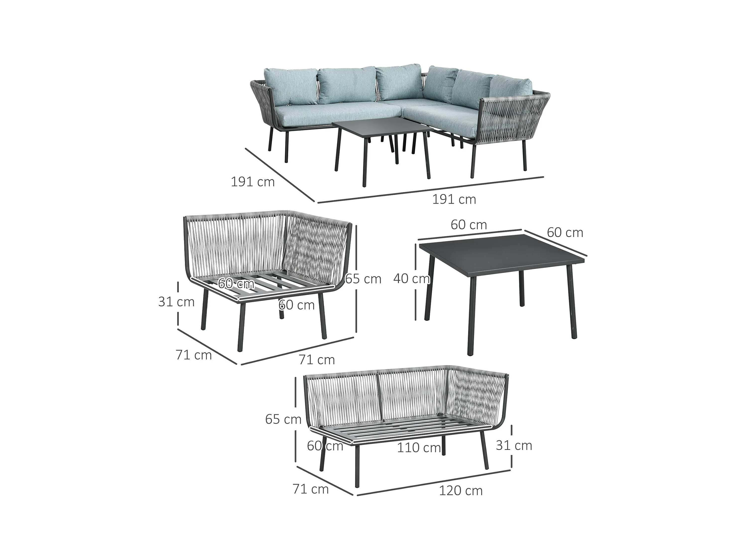 Set da giardino 4pz con 2 divani angolari poltroncina e tavolino