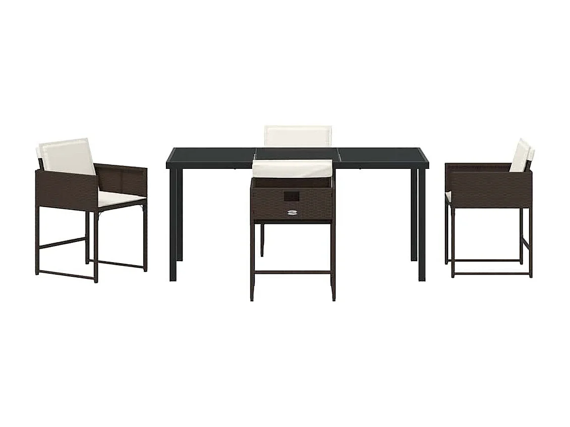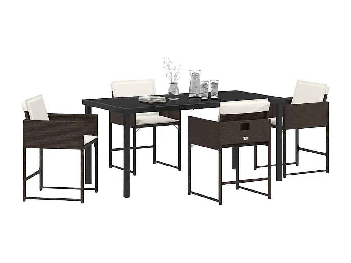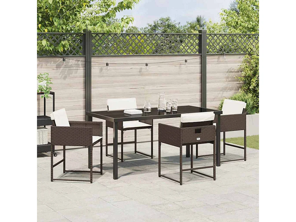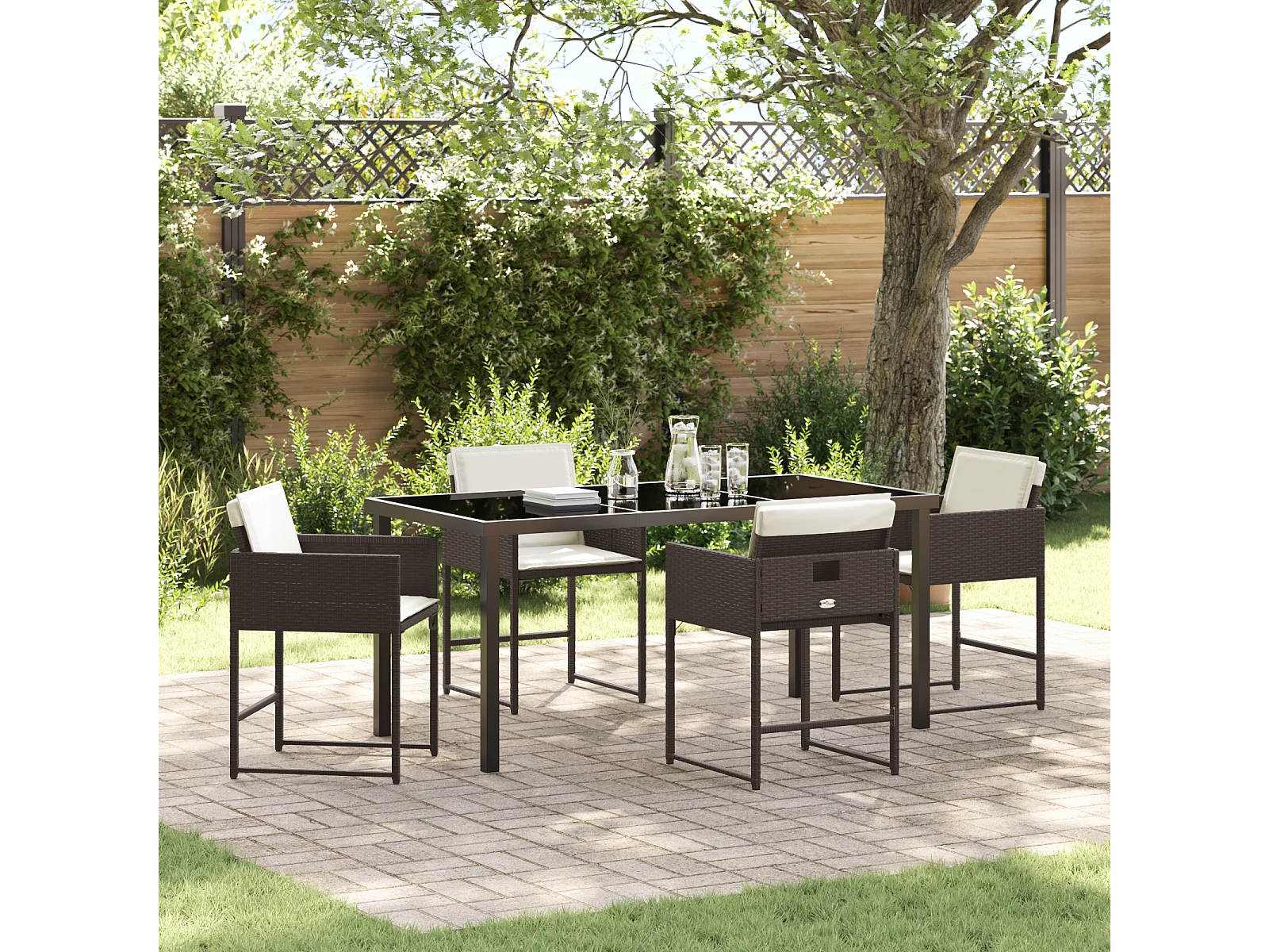 Set da pranzo da giardino 5 pezzi con cuscini in polyrattan marrone