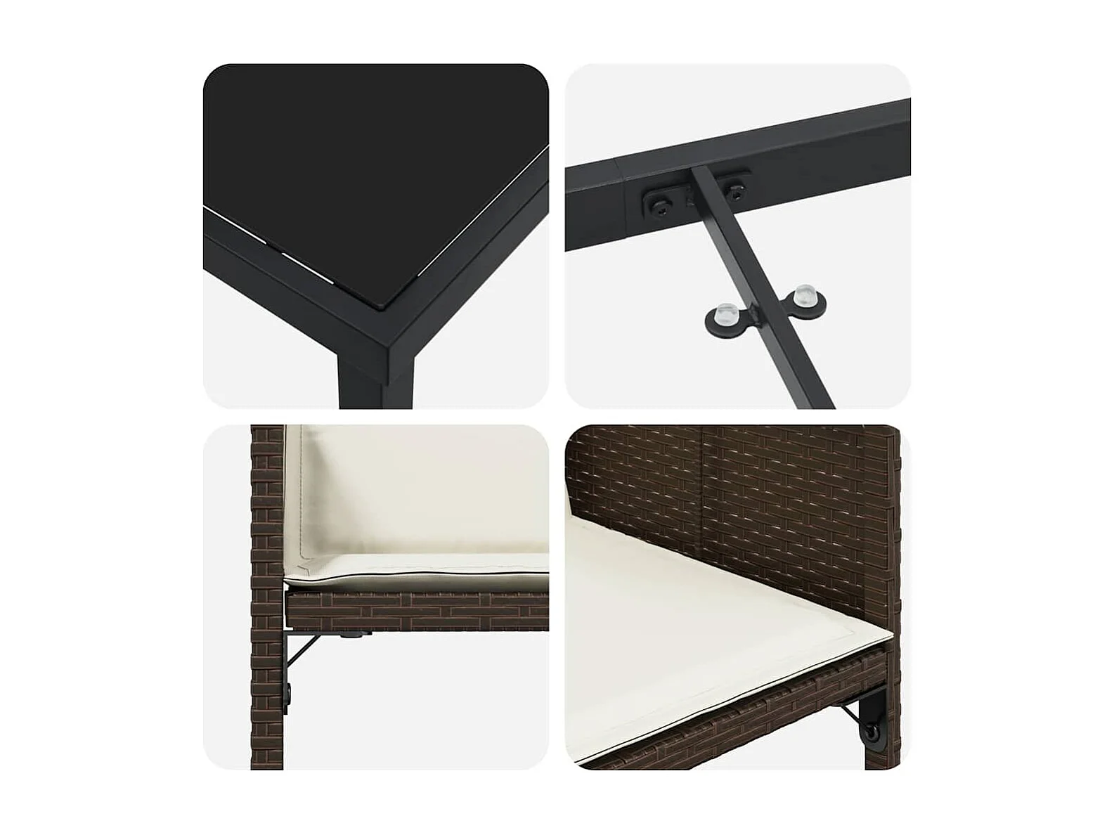 Set da giardino 5 pezzi con cuscini in rattan sintetico marrone