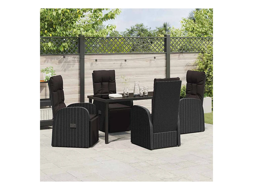 Set da giardino 5 pezzi con cuscini - Polyrattan nero