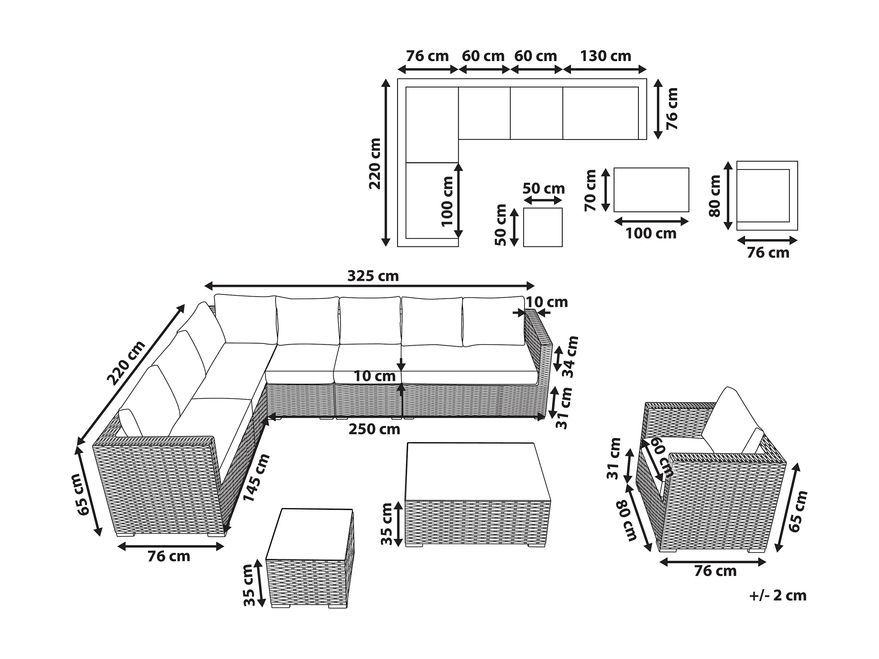 Set da giardino con tavolo 8 posti XXL Lato destro Modulare Marrone scuro