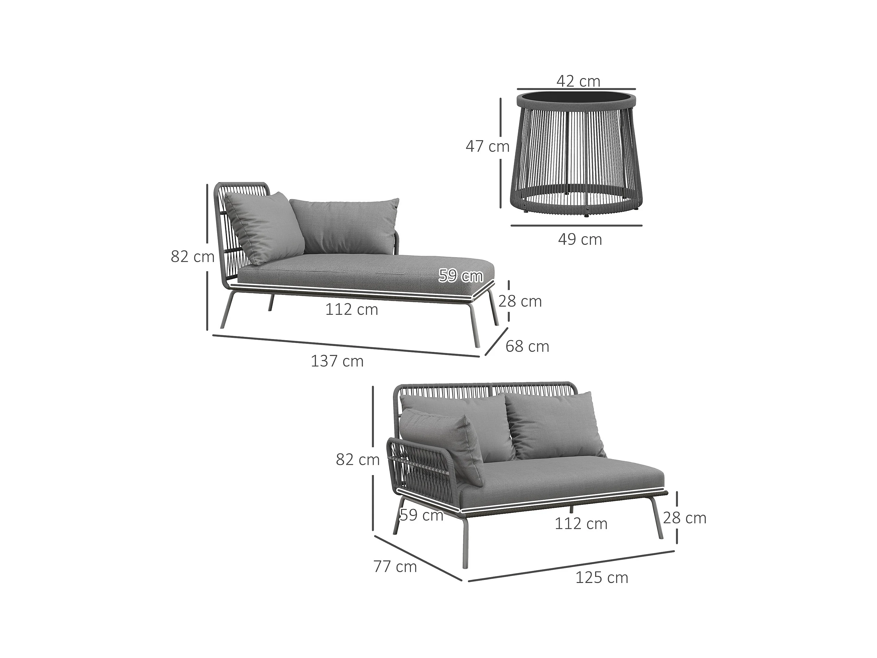 Set da giardino con 2 poltrone, divanetto e tavolino in hdpe grigio