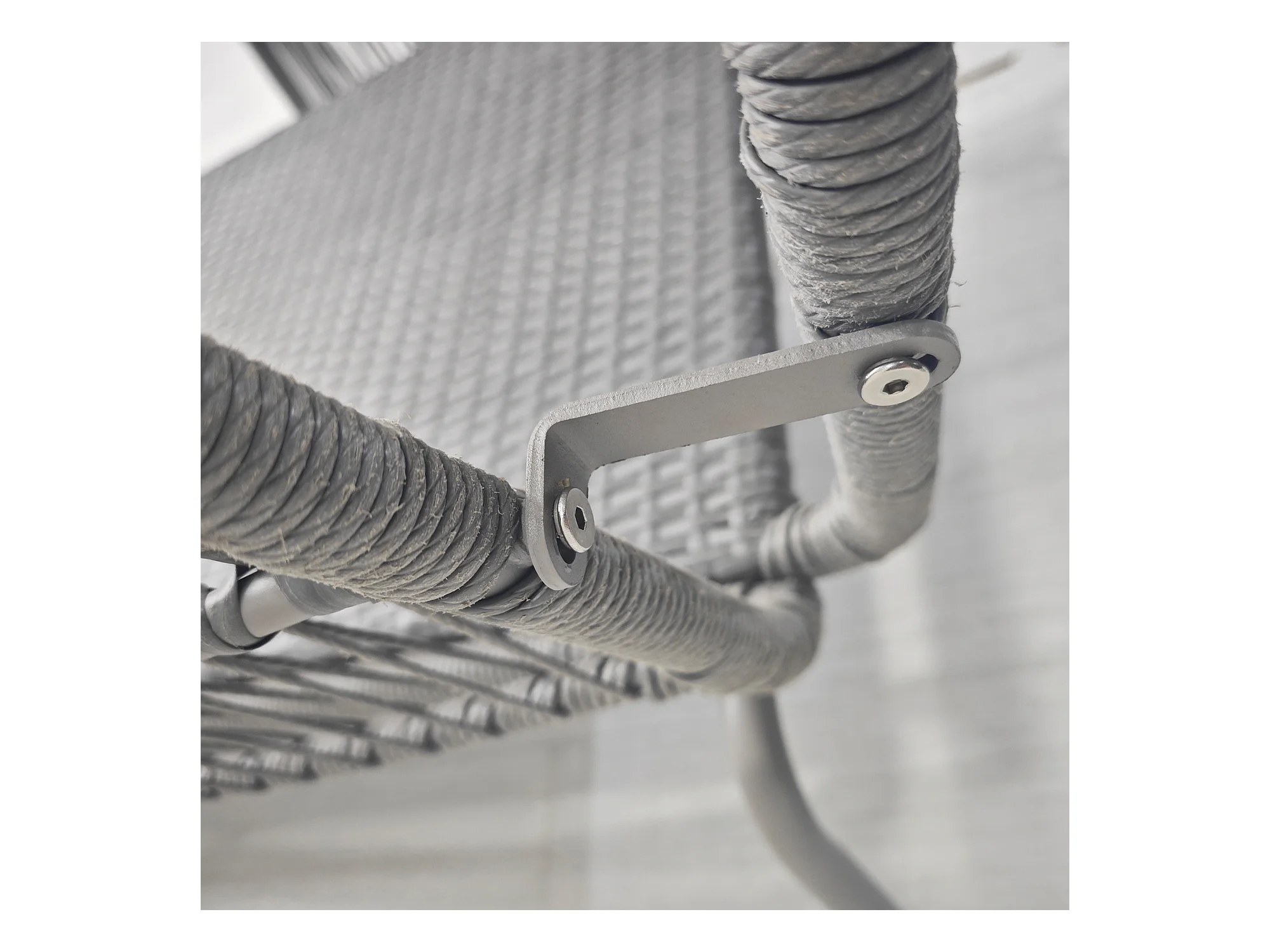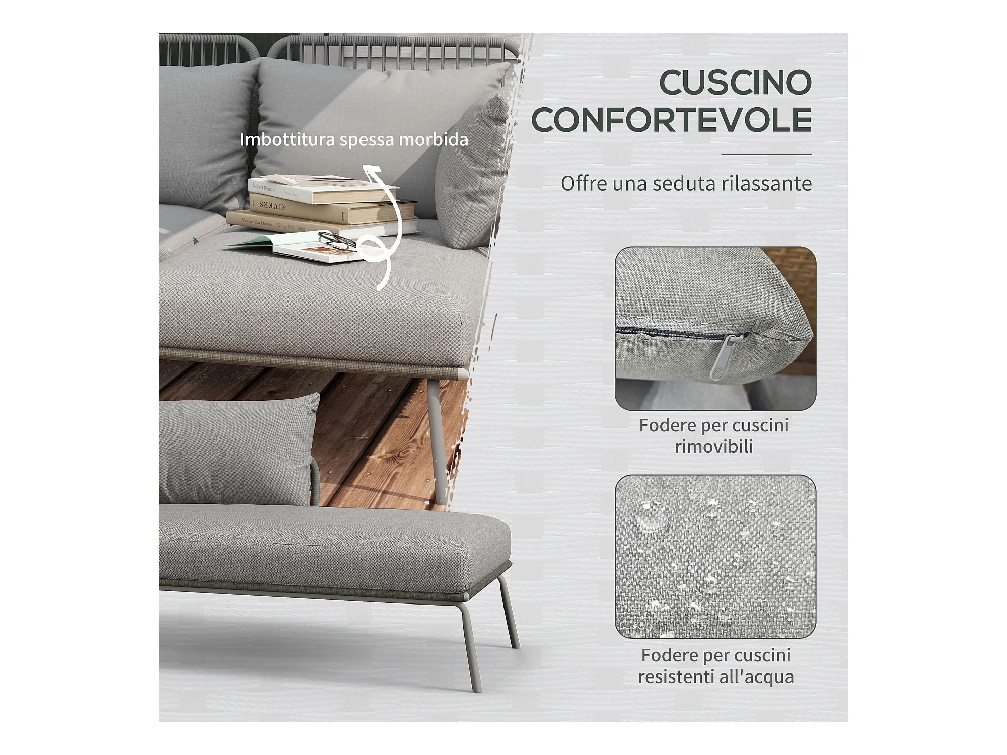 Set da giardino boho con divano angolare e tavolino in rattan grigio