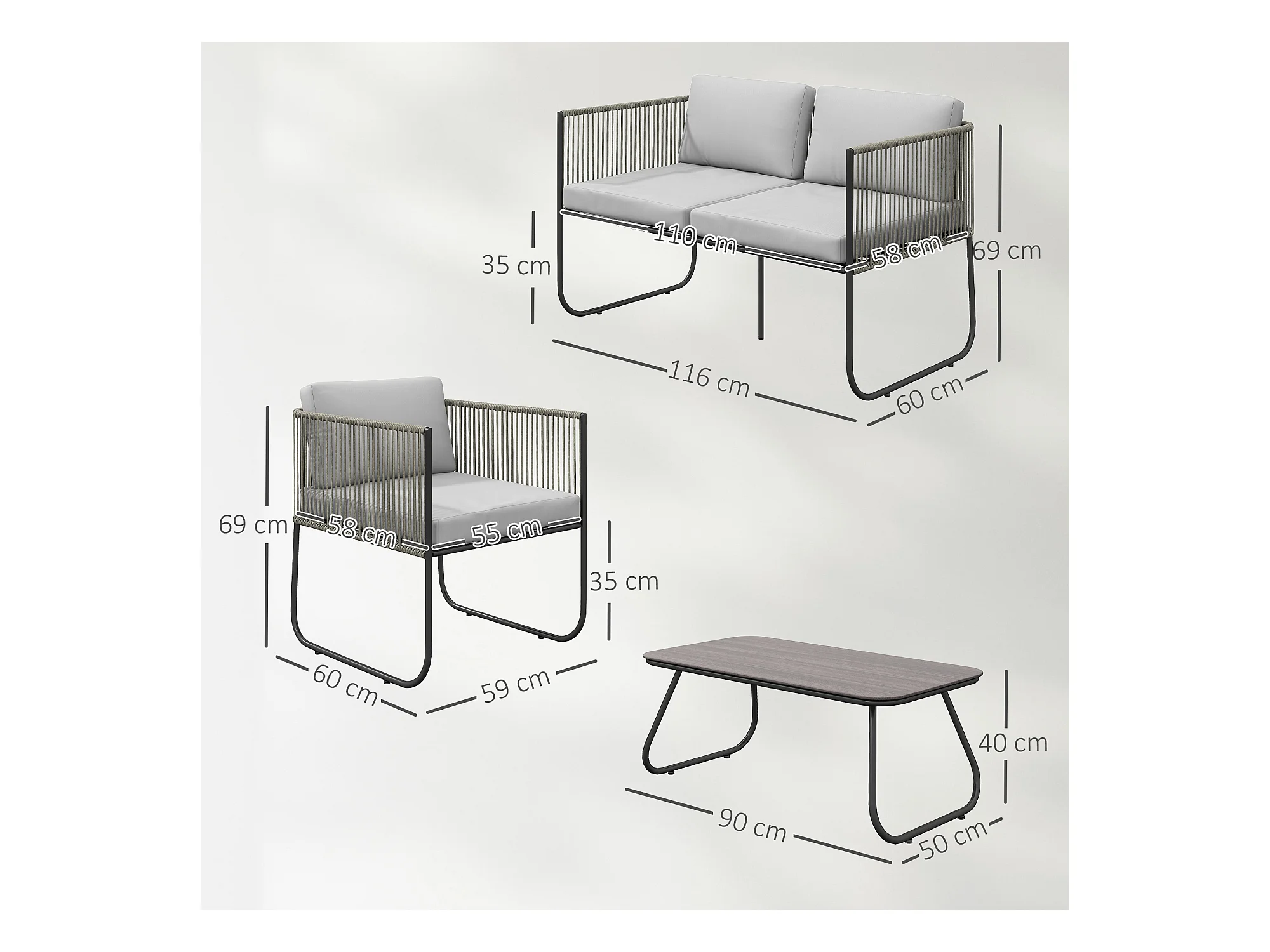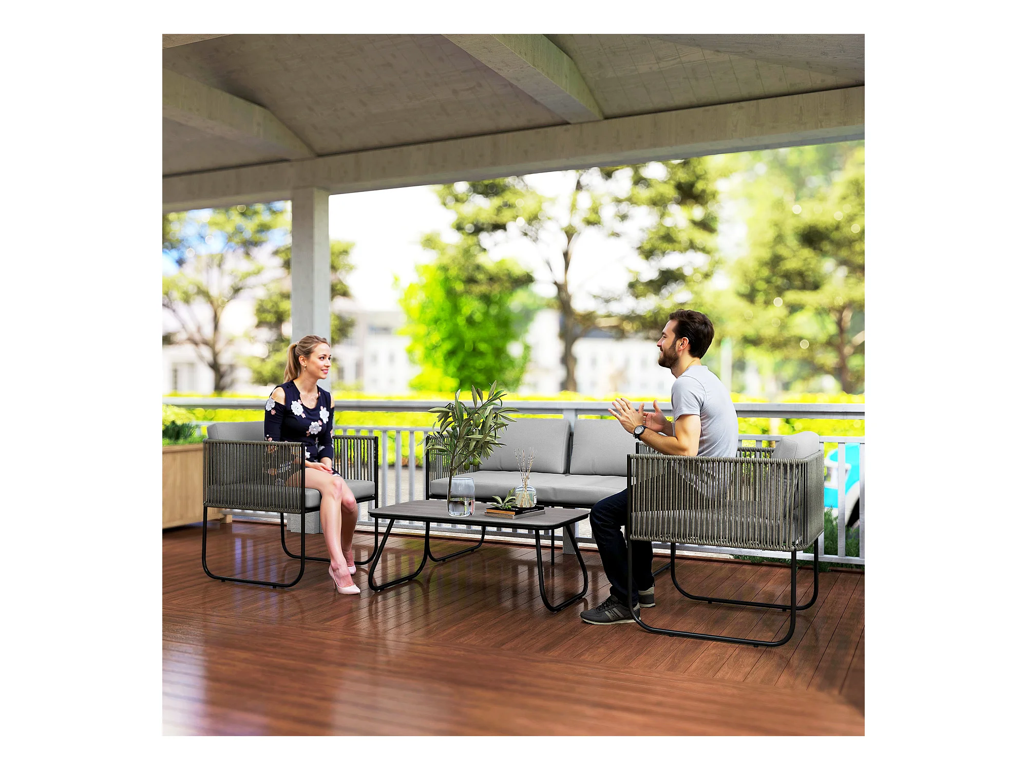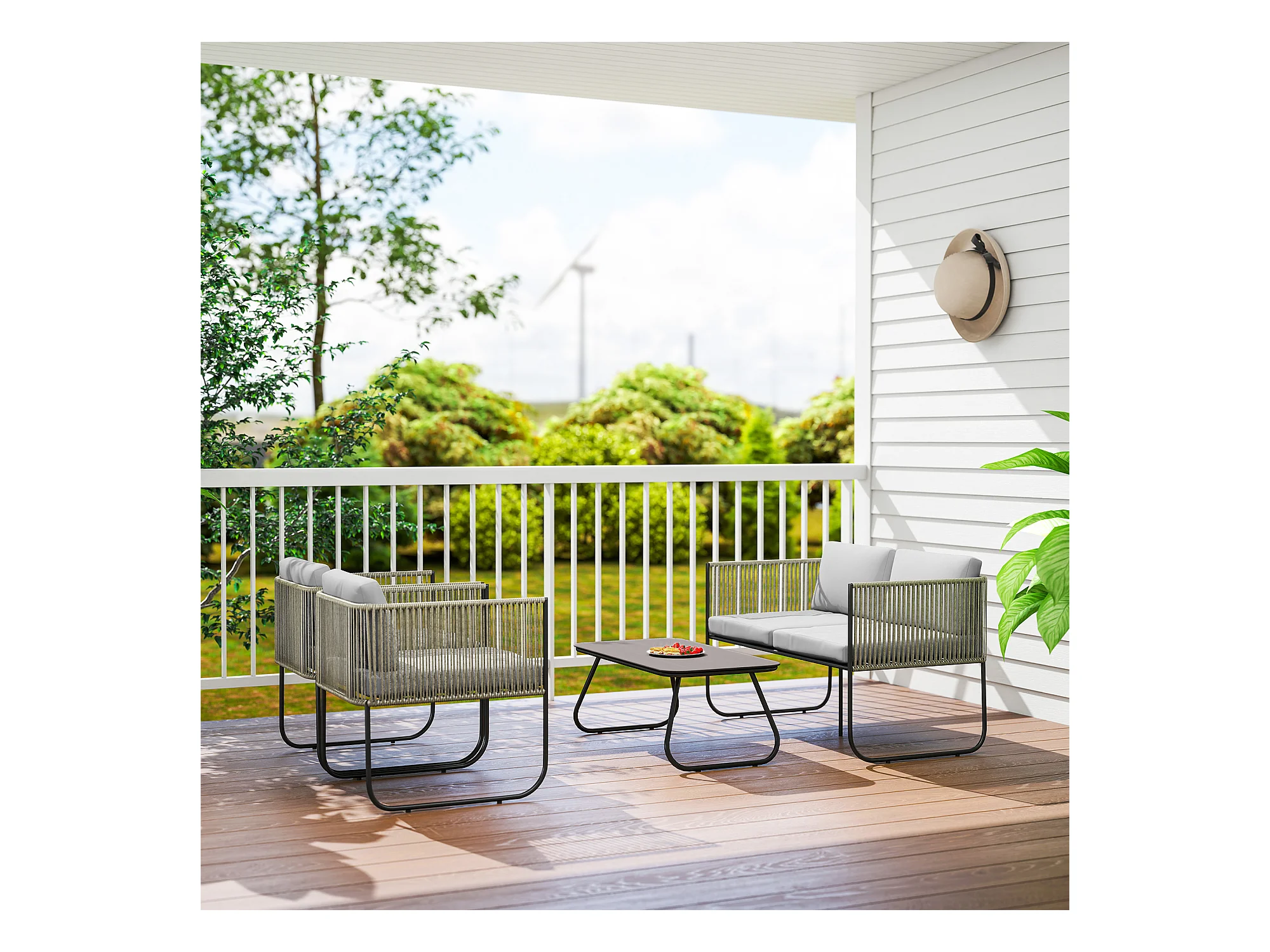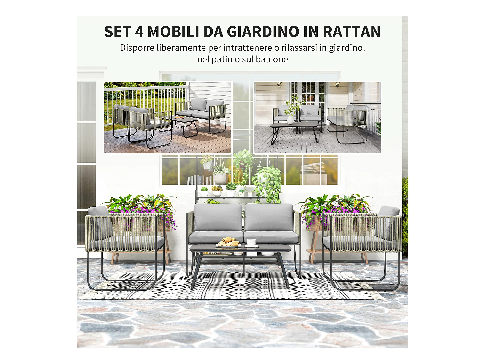 Set da giardino 4 pezzi in rattan con divanetto, 2 sedie e tavolino