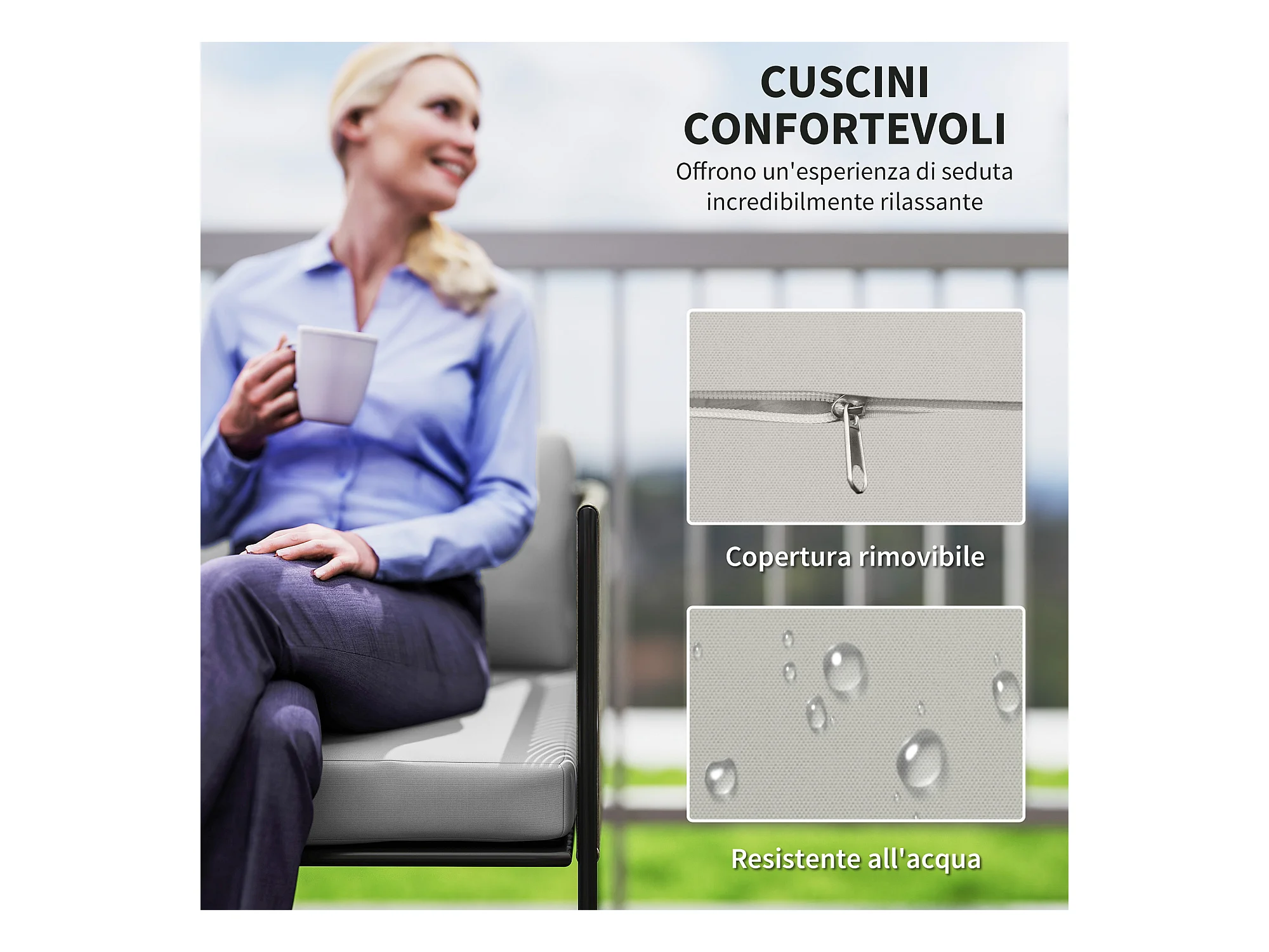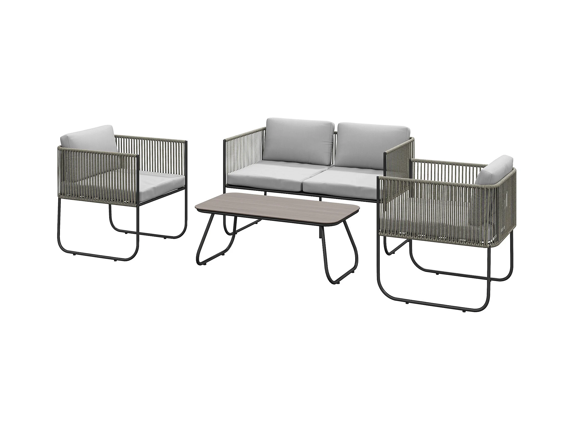 Set da giardino con 2 poltrone, divanetto e tavolino in hdpe grigio