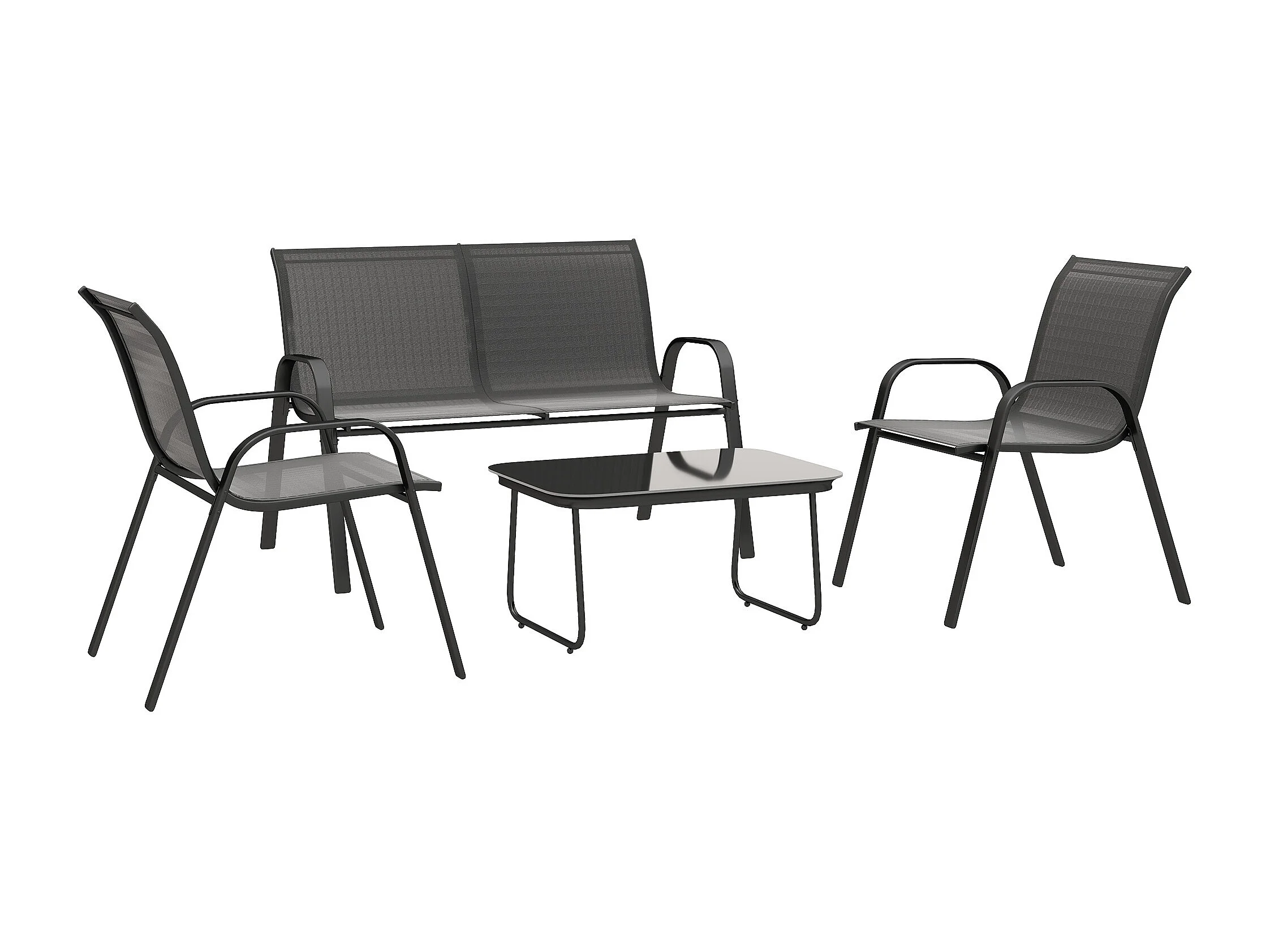 Set da giardino con divano 2 posti 2 poltroncine e tavolino nero