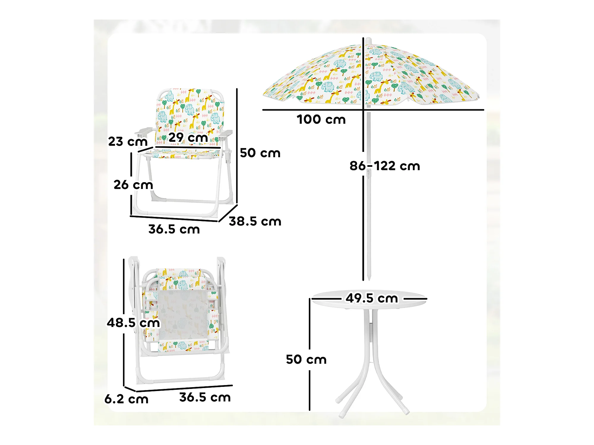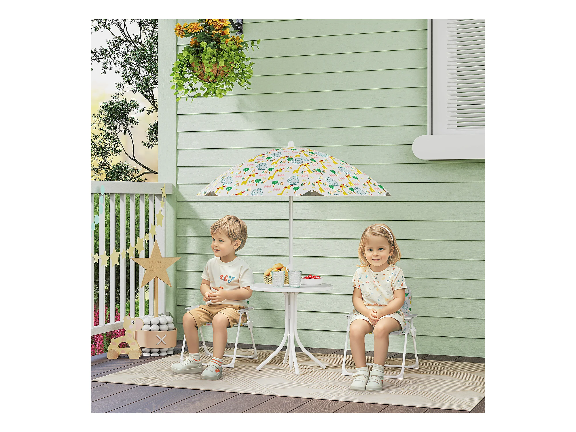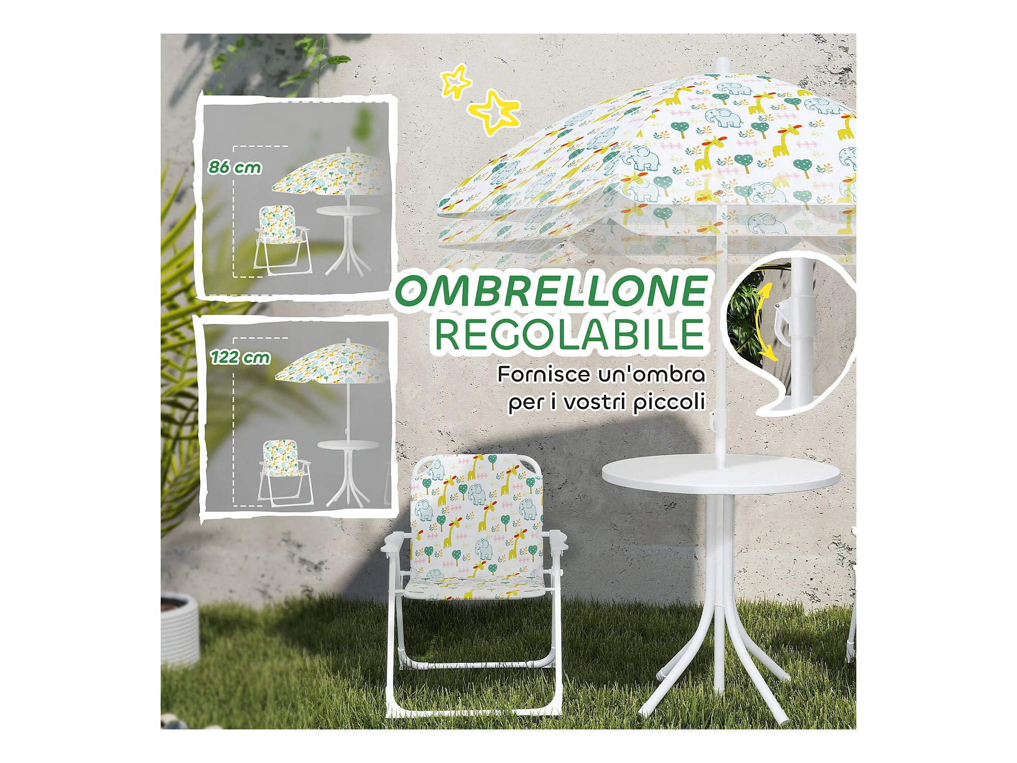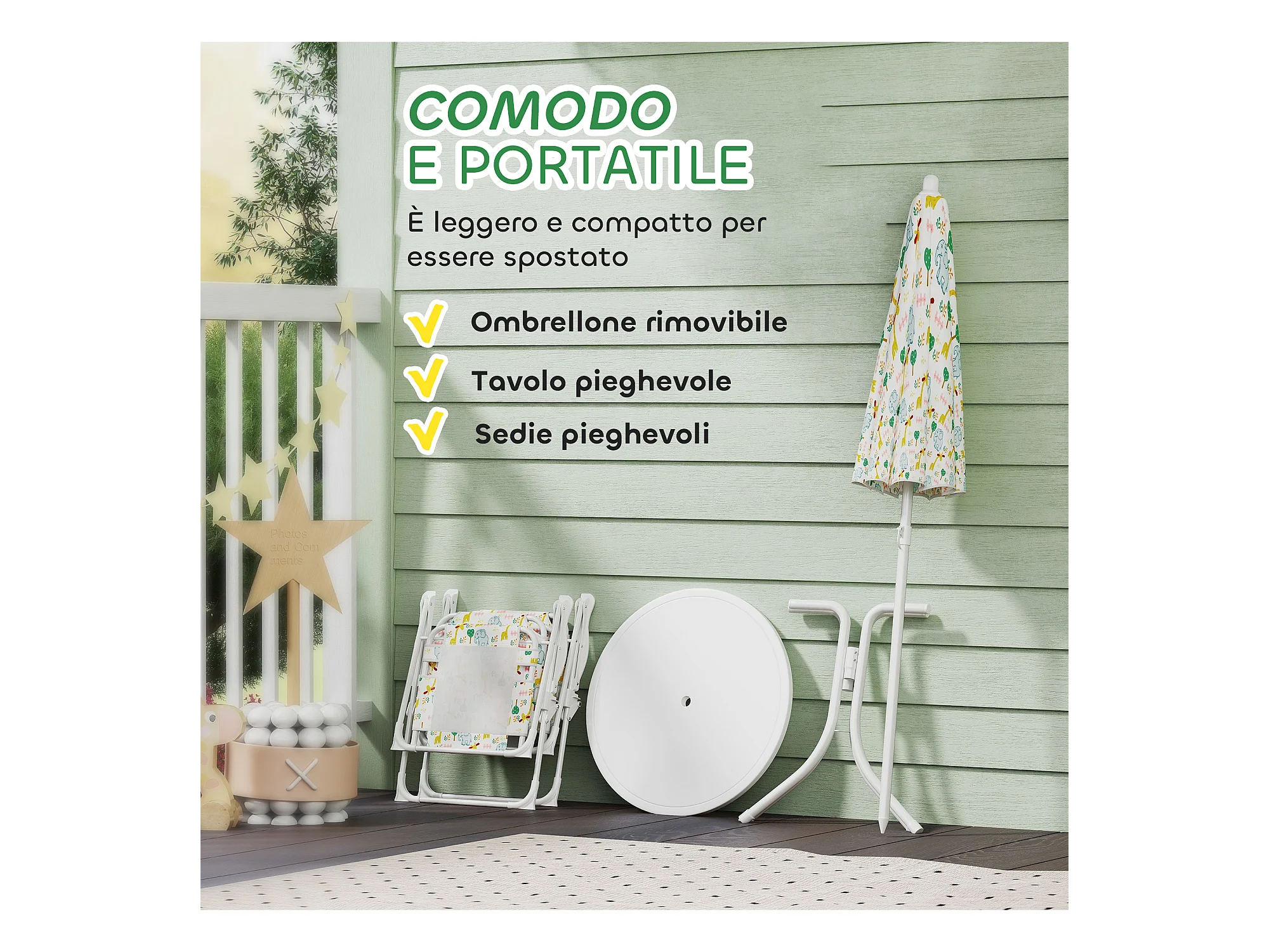 Set da giardino con tavolo 2 sedie e ombrellone per bambini bianco