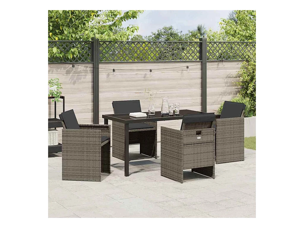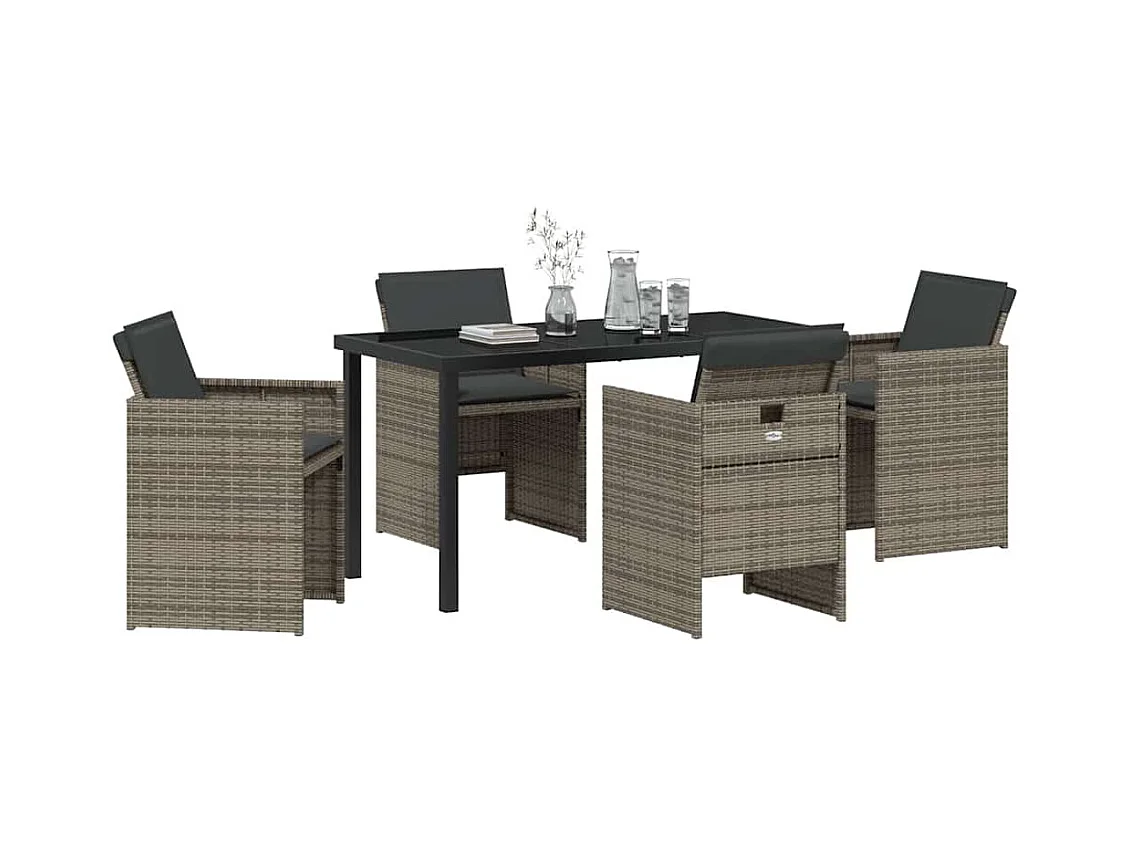 Set da giardino da 5 pezzi con cuscini in polyrattan grigio