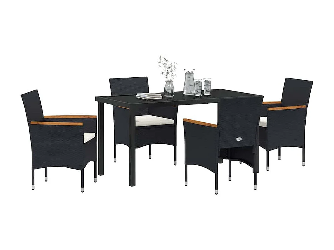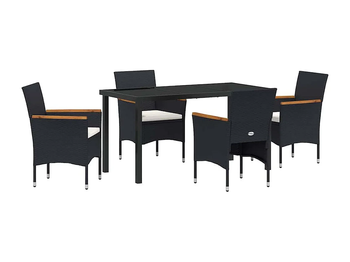 Set da pranzo da giardino da 5 pezzi con cuscini in rattan di poliestere nero