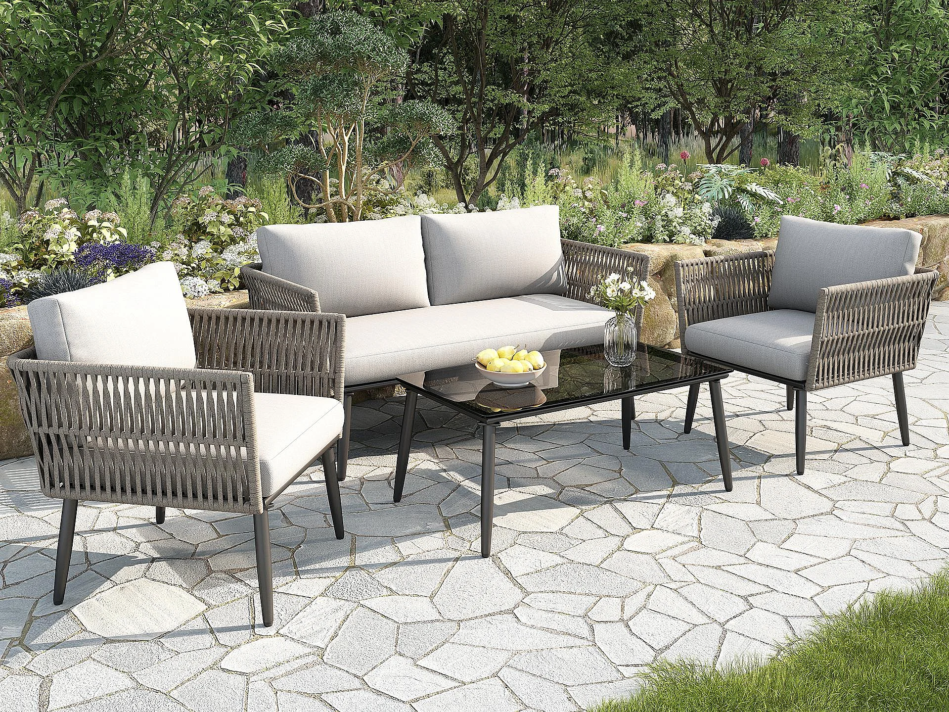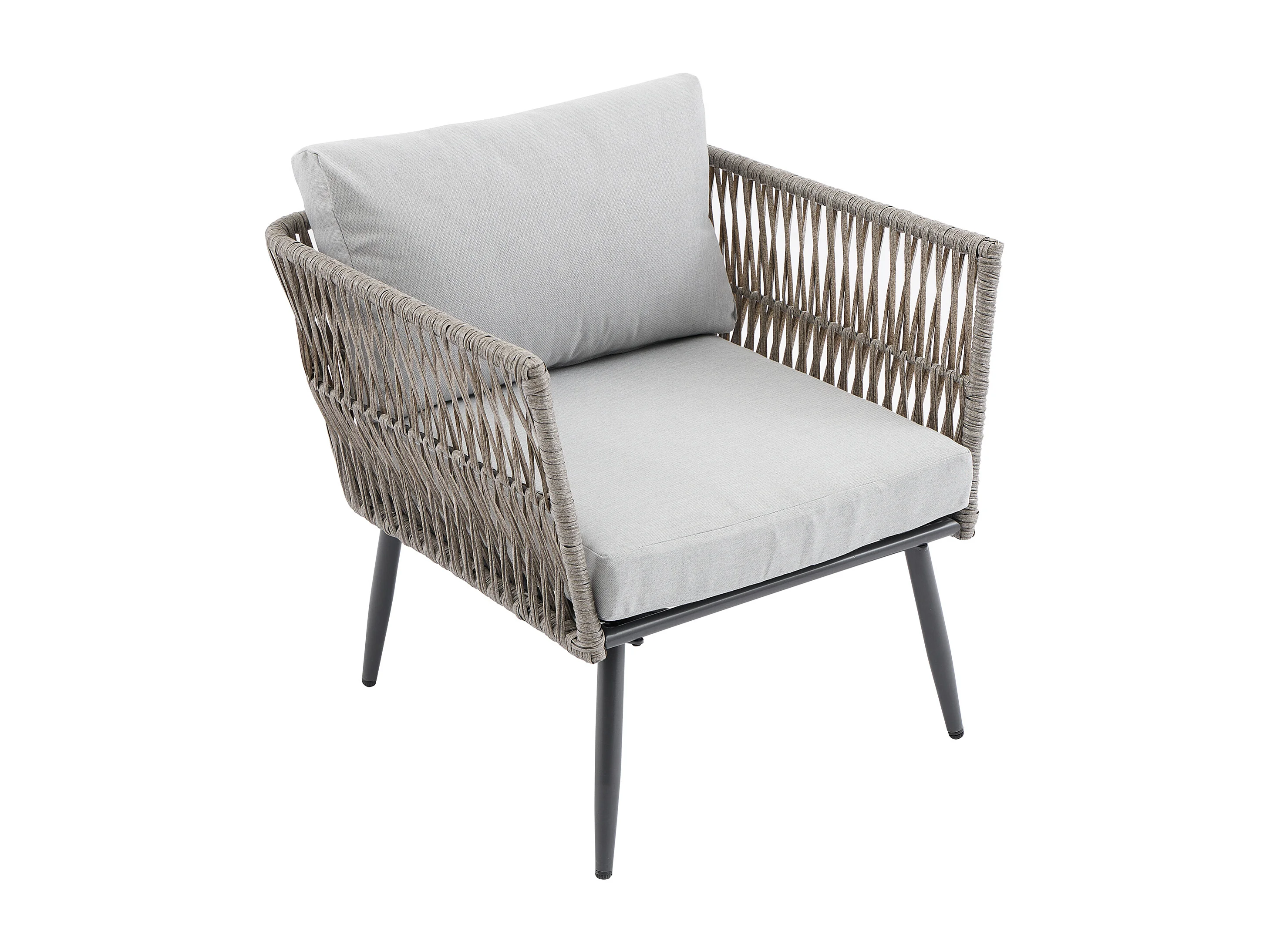 Set da giardino, insieme di mobili da esterno per 4 posti: divano, 2 poltrone e tavolino, esterno, corda in PE intrecciata, acciaio zincato, colore grigio
