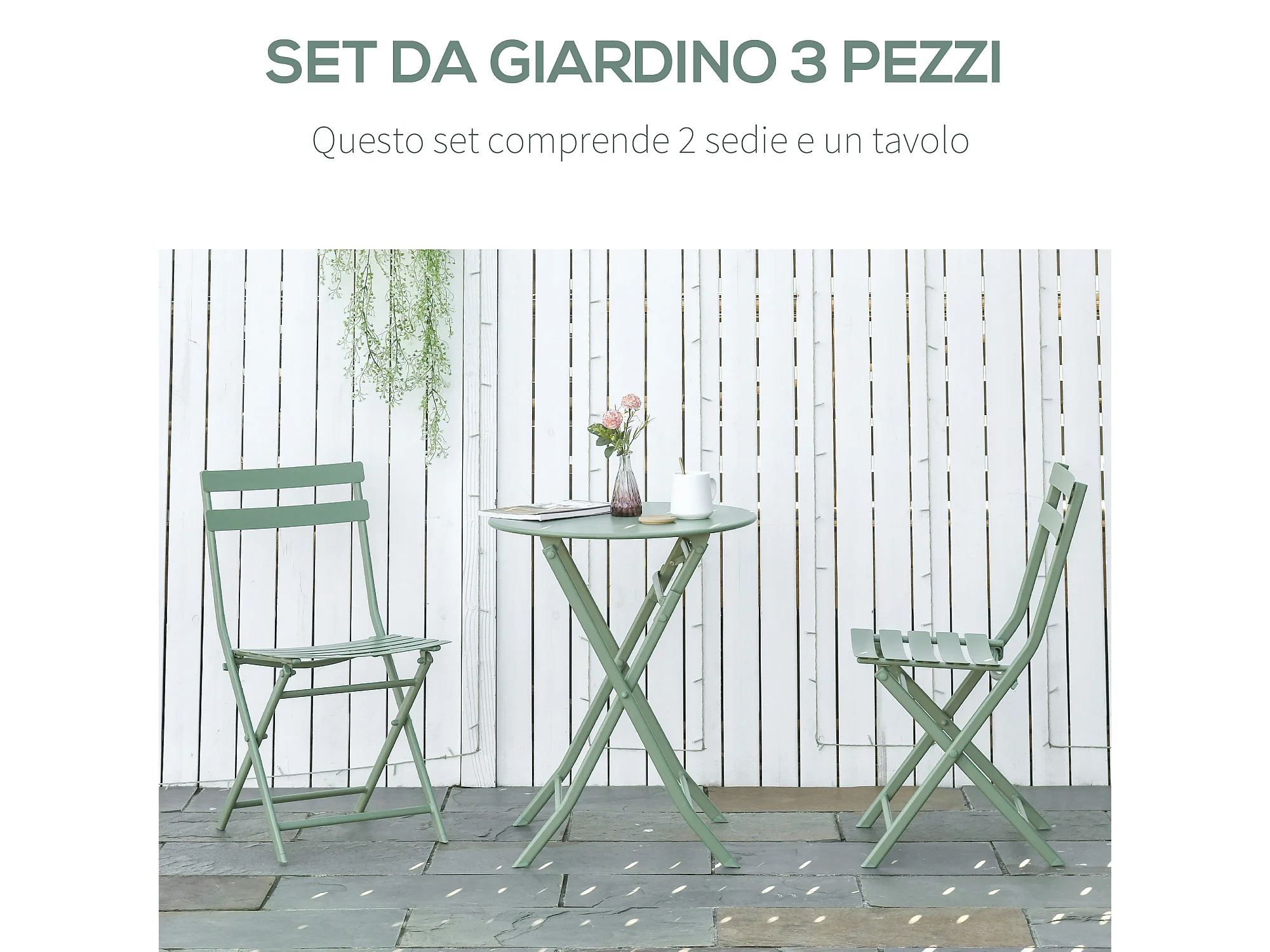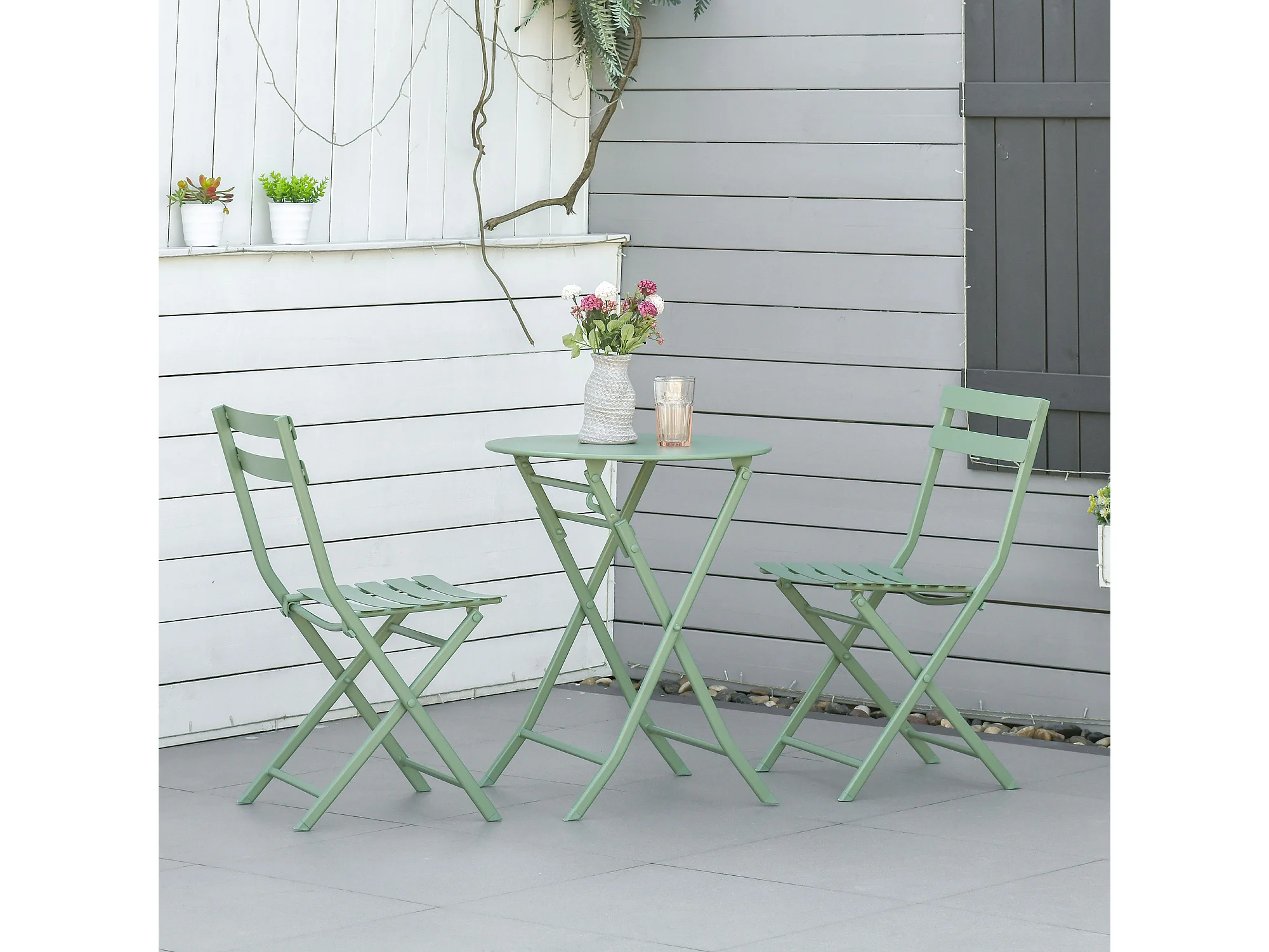 Set da giardino pieghevole con 2 sedie e tavolo in acciaio verde