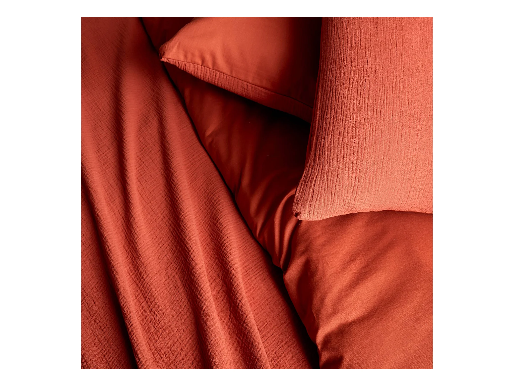 Parure Letto in Mussola di Cotone "Angelia" 240x220cm Terracotta
