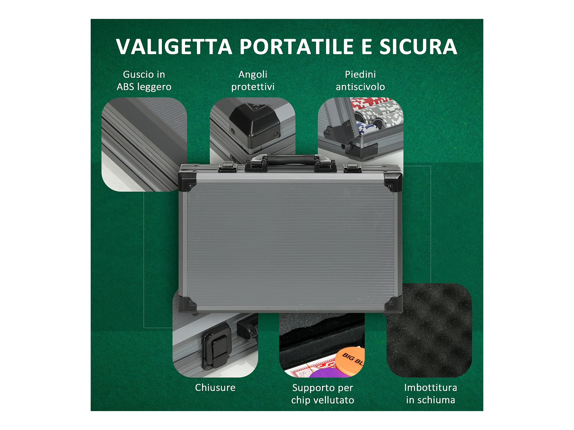 Set da poker per 10 giocatori con 400 fiches e valigetta grigia