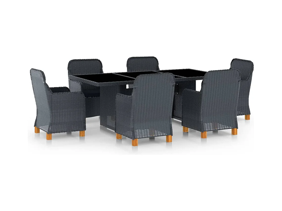 Set da pranzo mobili da giardino mobili da esterno 7 pezzi polyrattan nero e acacia 02_0014372