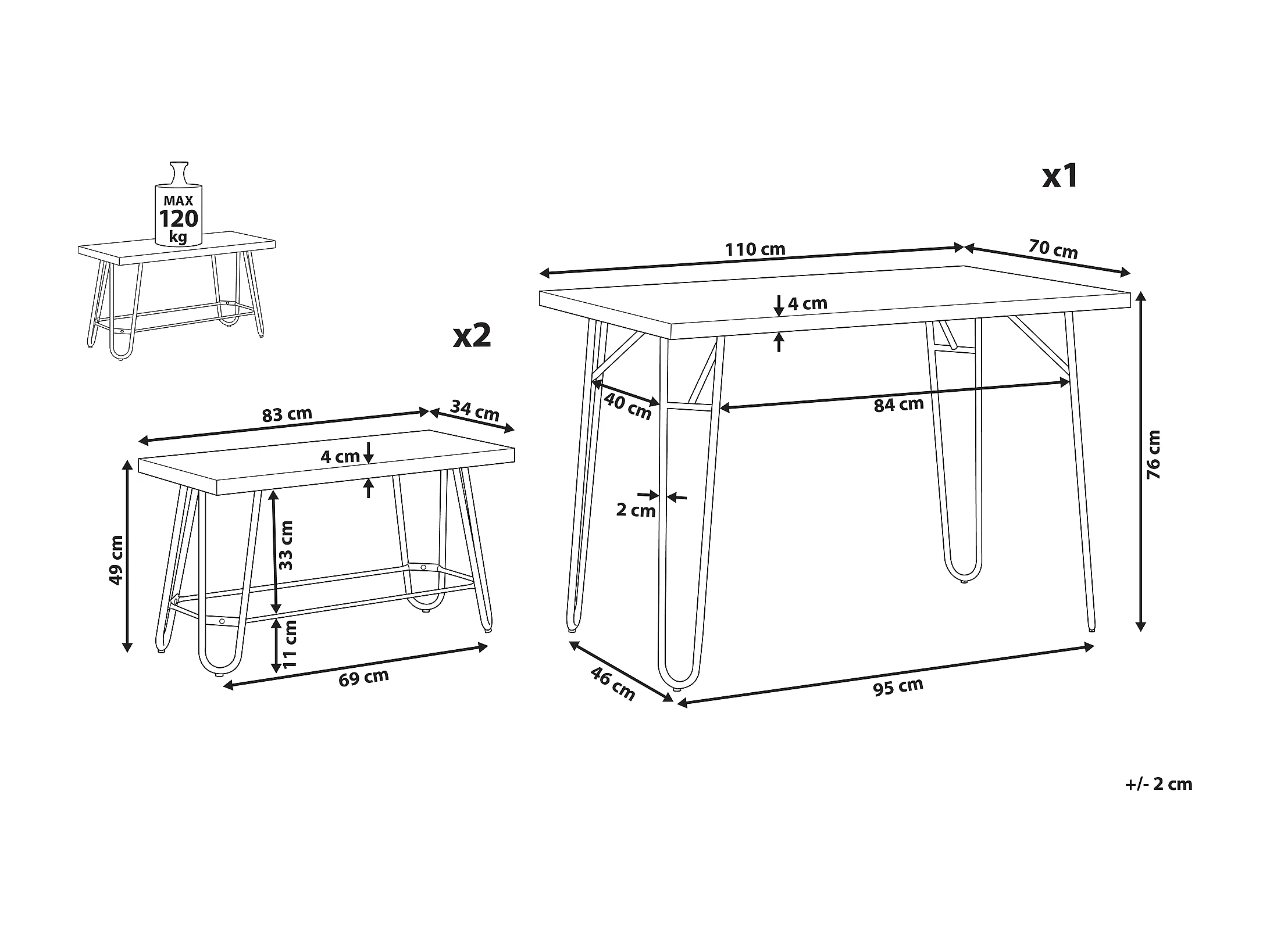 Set di tavoli e sedie nero