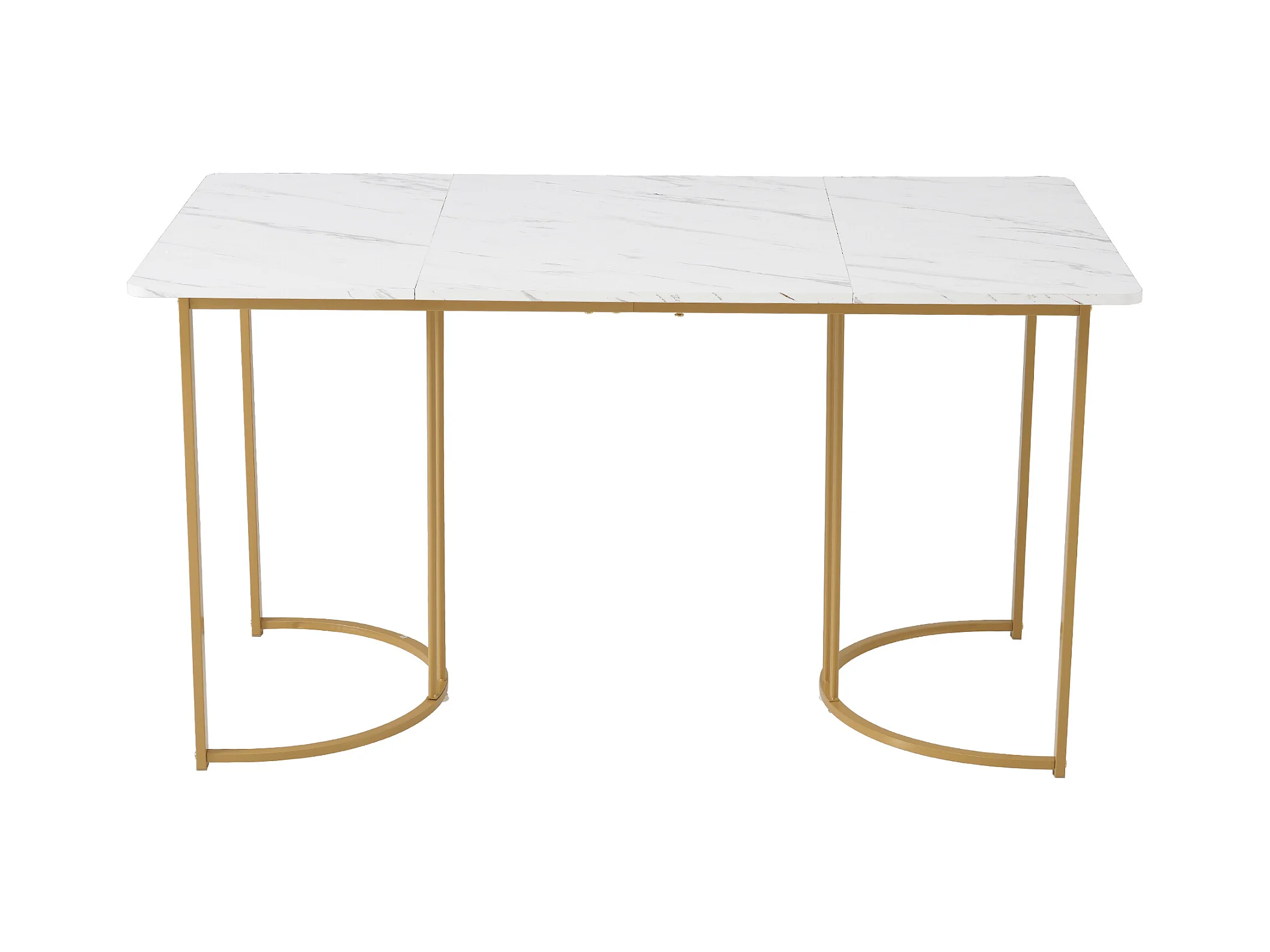 Set da pranzo da 5 pezzi, con 4 sedie, tavolo in MDF bianco con gambe in metallo dorato, sedie in velluto beige (140x80x75 cm)