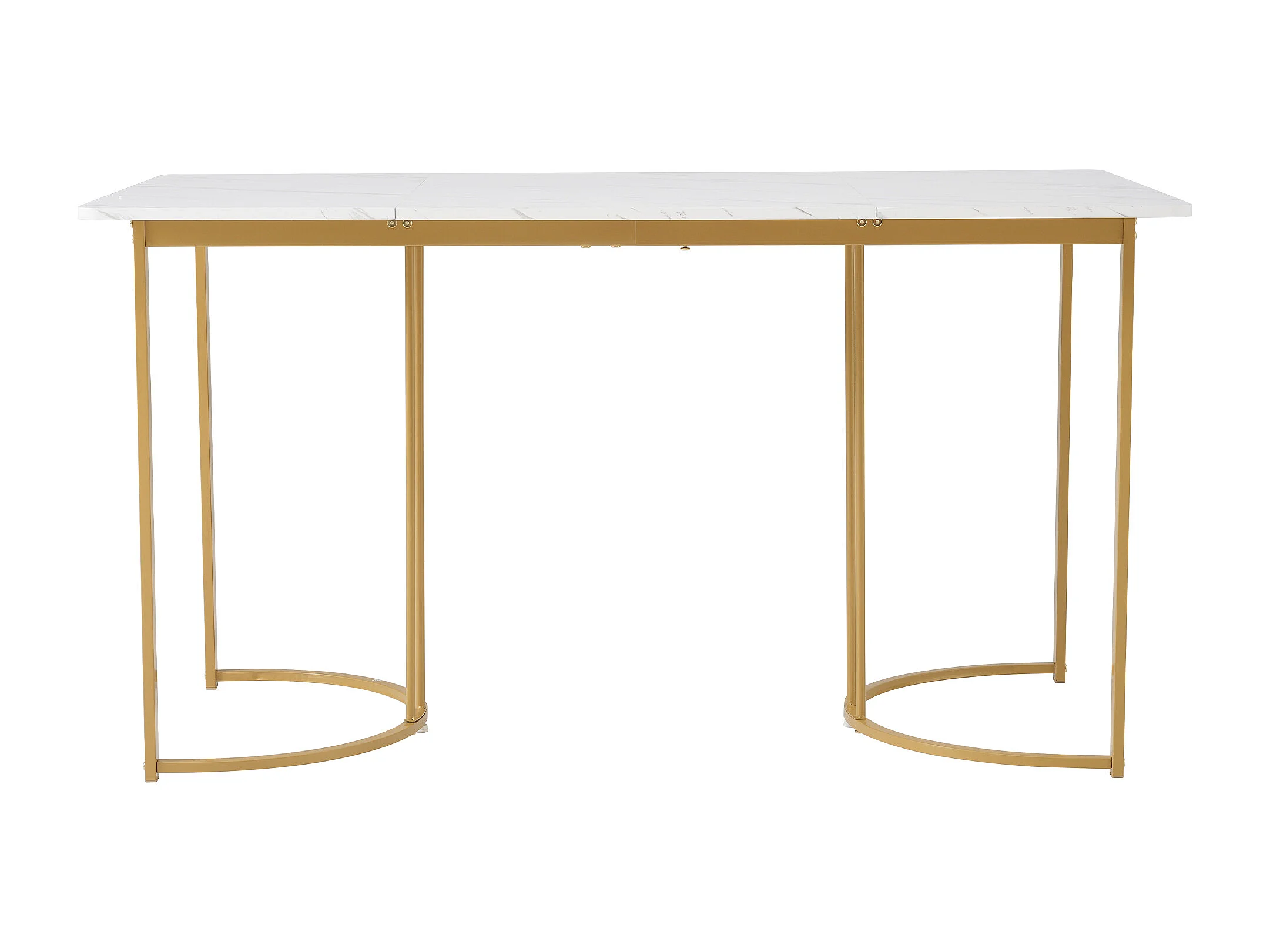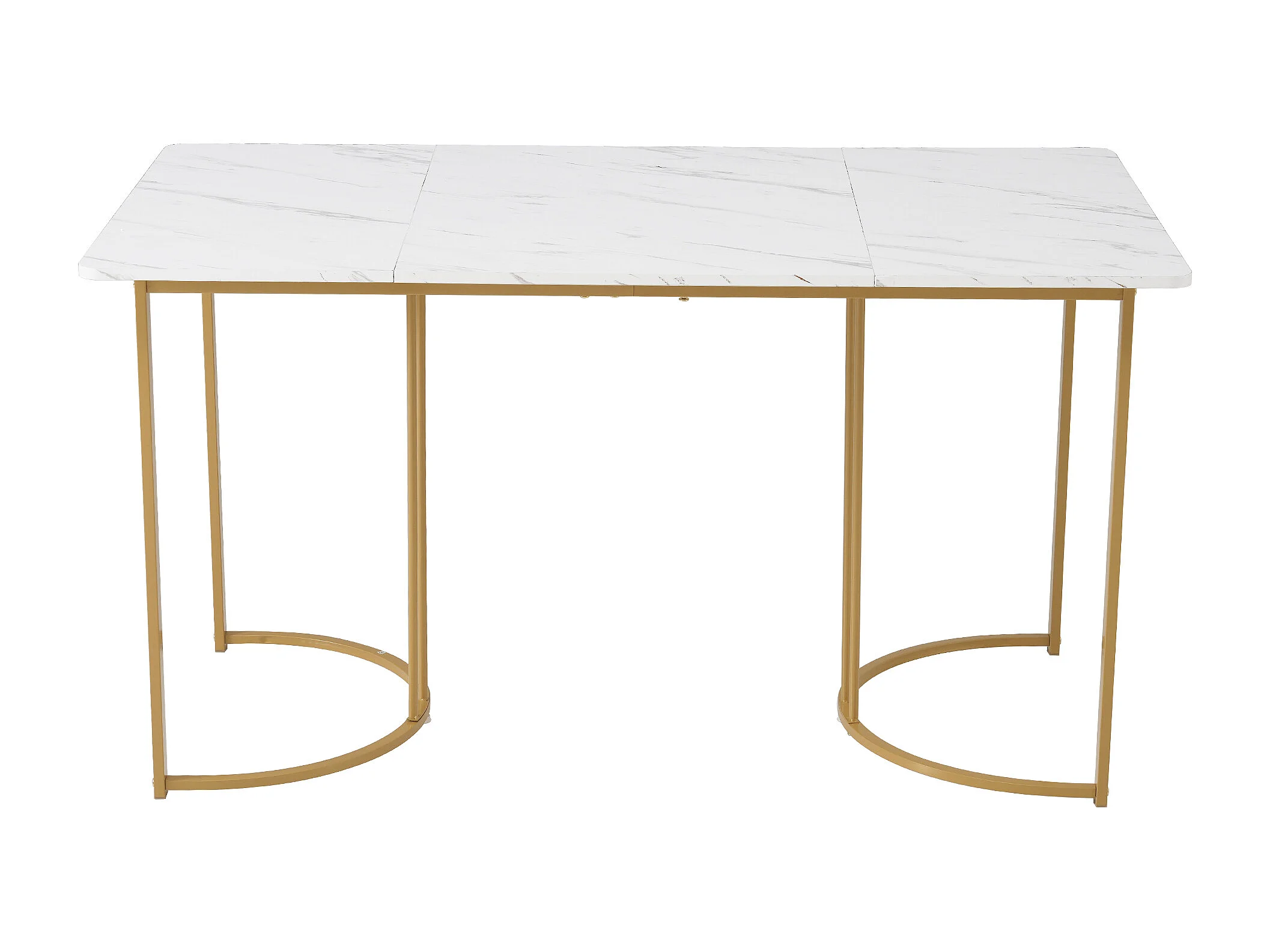 Set da pranzo (5 pezzi), tavolo 140x80 cm con 4 sedie in velluto beige, gambe in metallo dorato, MDF bianco (140x80x75 cm)