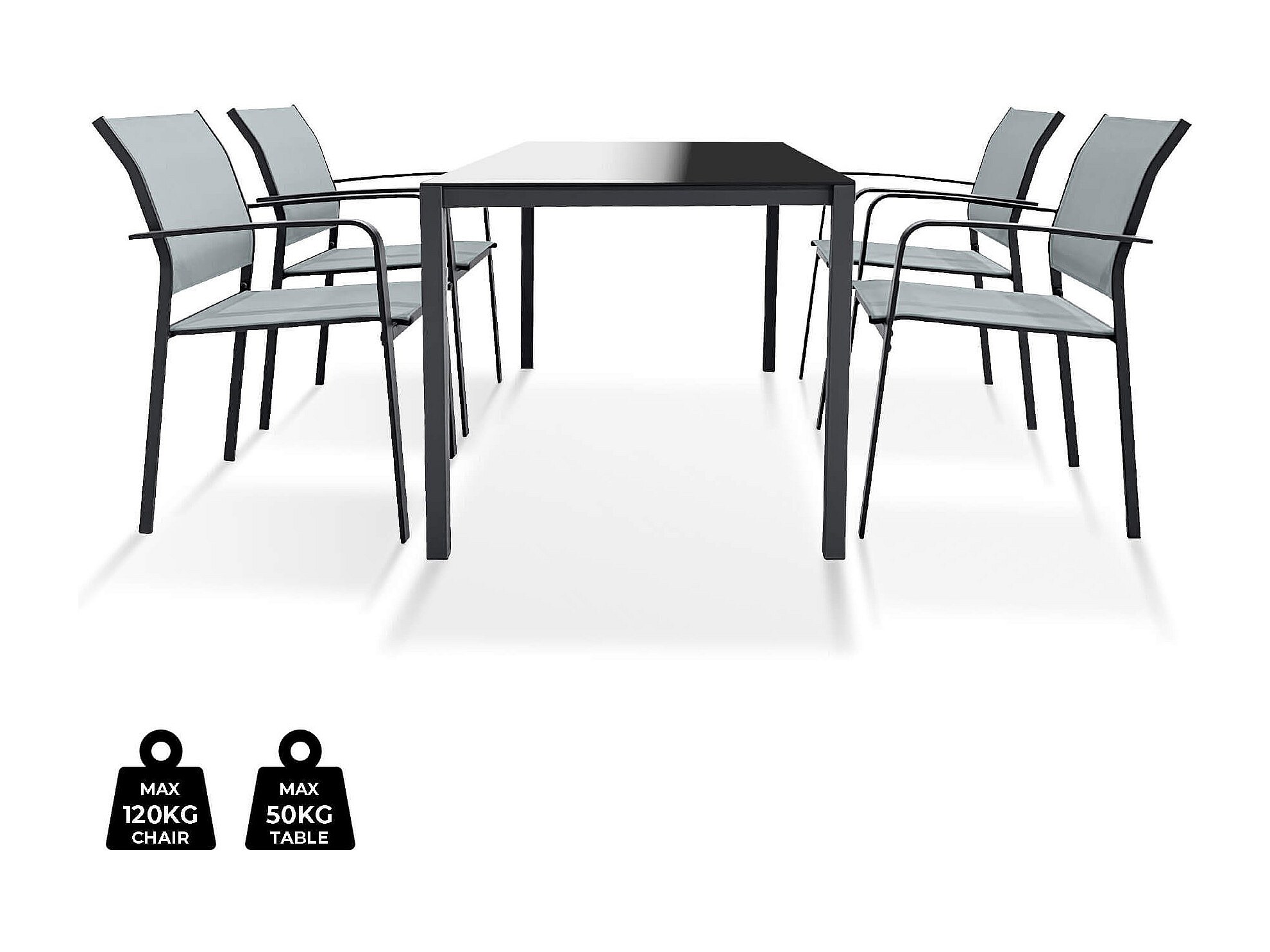 Set da Pranzo da Esterno Rebecca Mobili Snobar 74x150x80 Acciaio Poliestere Grigio Scuro Nero Moderno SET 5 pz