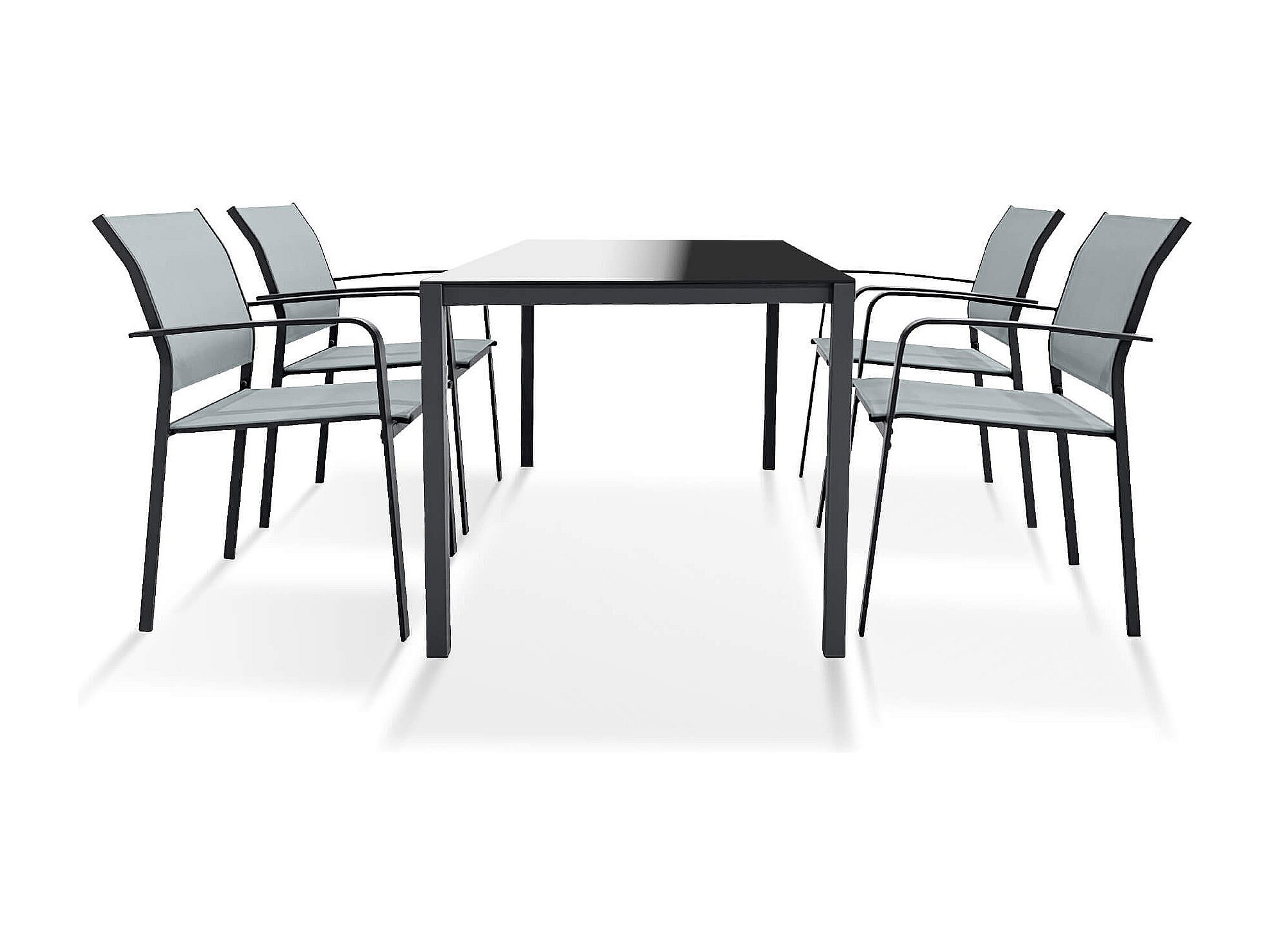 Set tavolo da giardino in metallo, 4 sedie, antracite