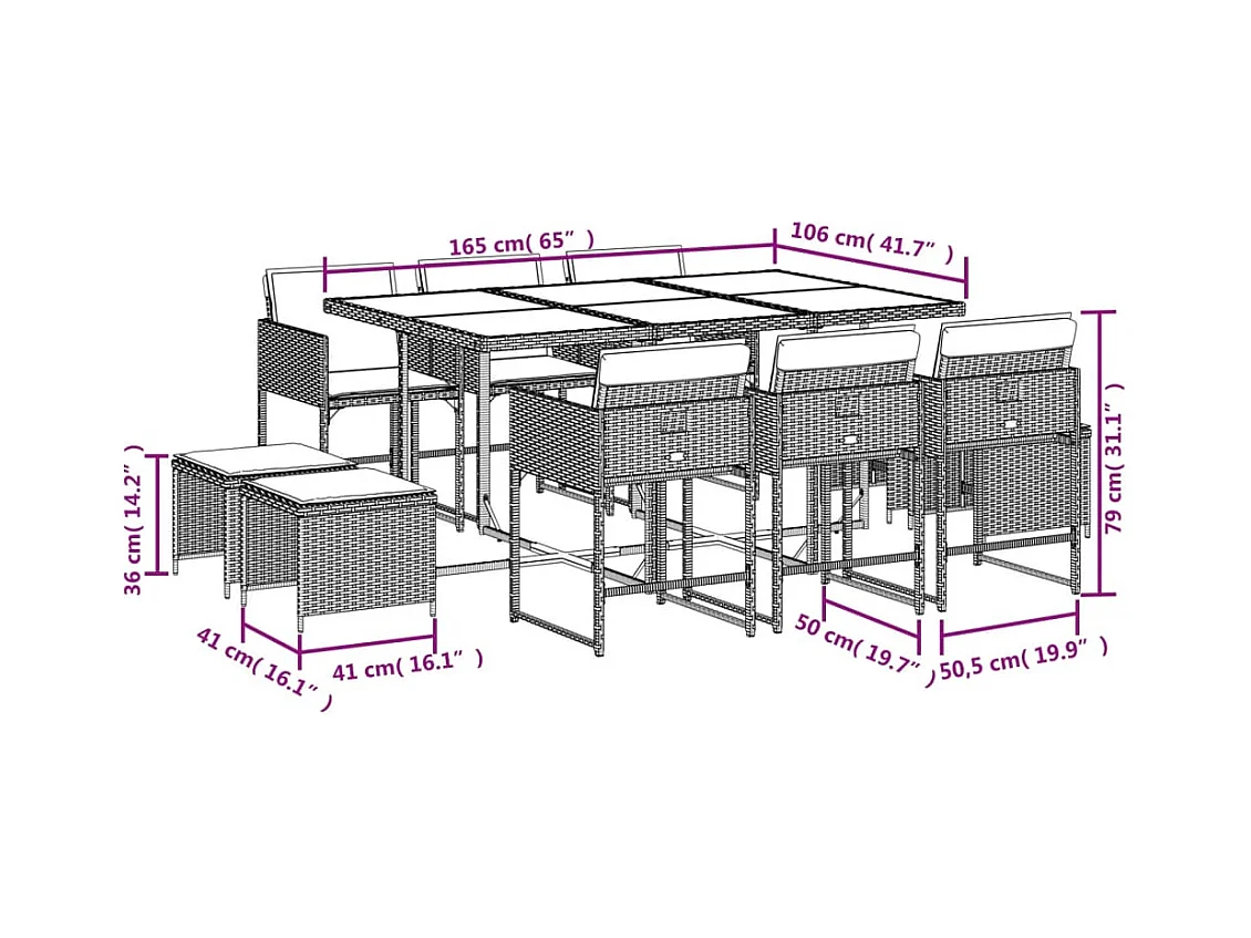 Set da Pranzo da Giardino 11 pz con Cuscini Beige in Polyrattan
