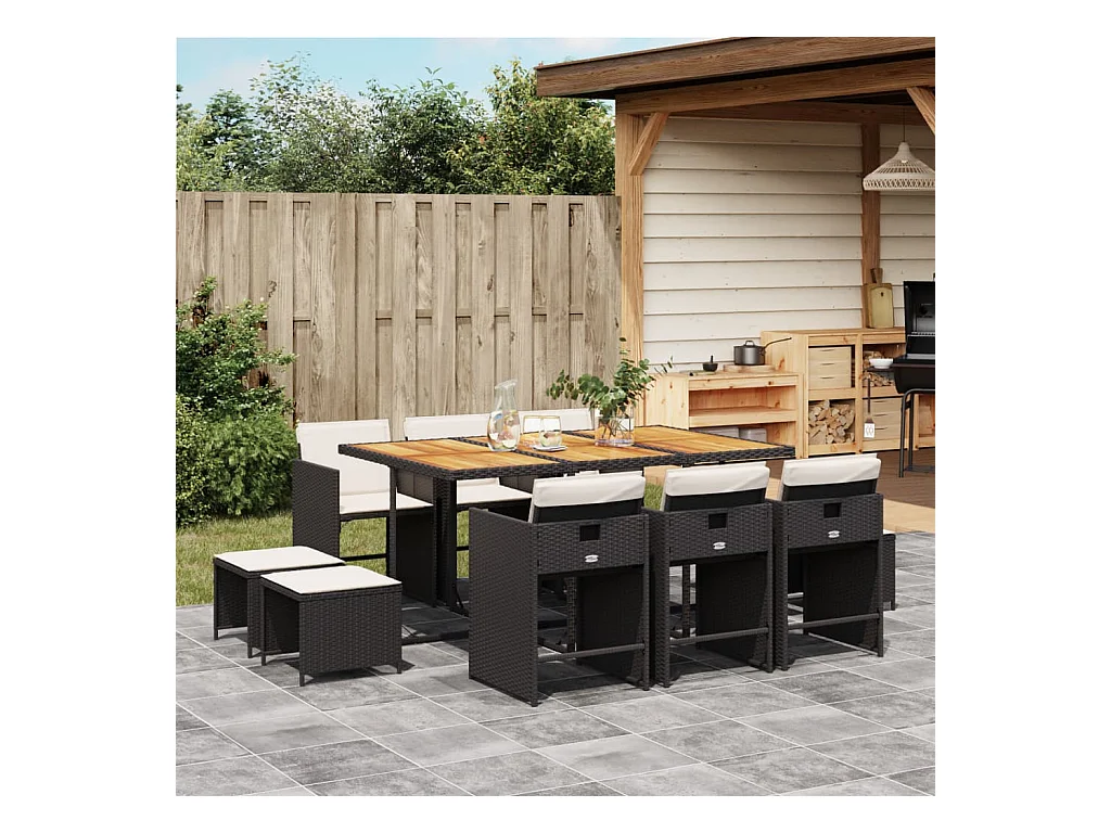 Set da Pranzo da Giardino 11 pz con Cuscini in Polyrattan Nero