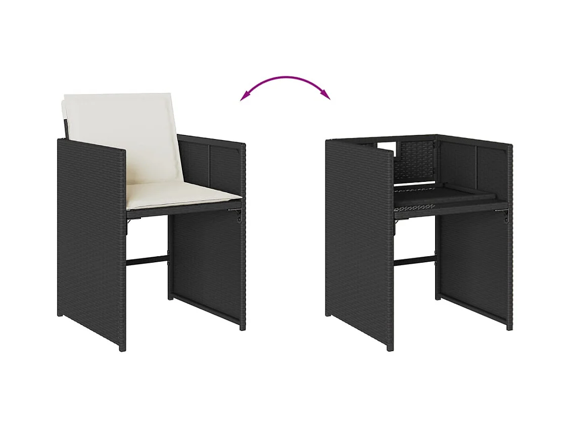 Set da Pranzo da Giardino 7 pz Nero con Cuscini in Polyrattan