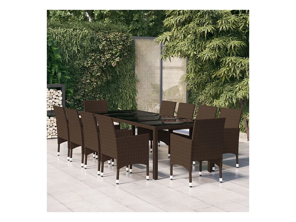 Mobili da giardino mobili da esterno Set di mobili da 11 pezzi con cuscini in resina intrecciata marrone 02_0015433