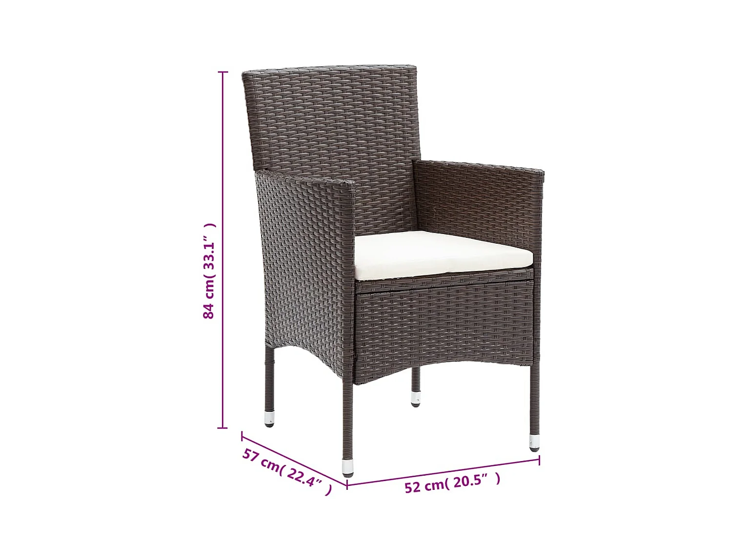 Set da Bistrot 3 pz con Cuscini in Polyrattan Marrone