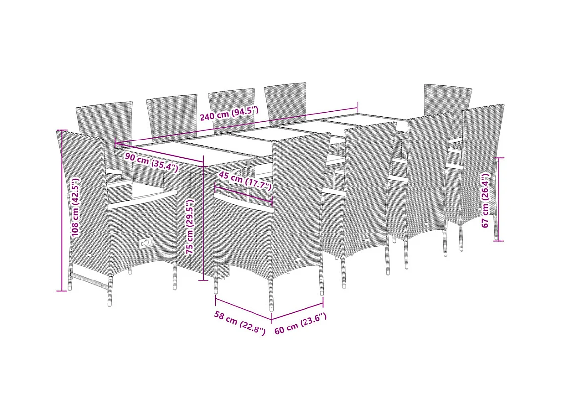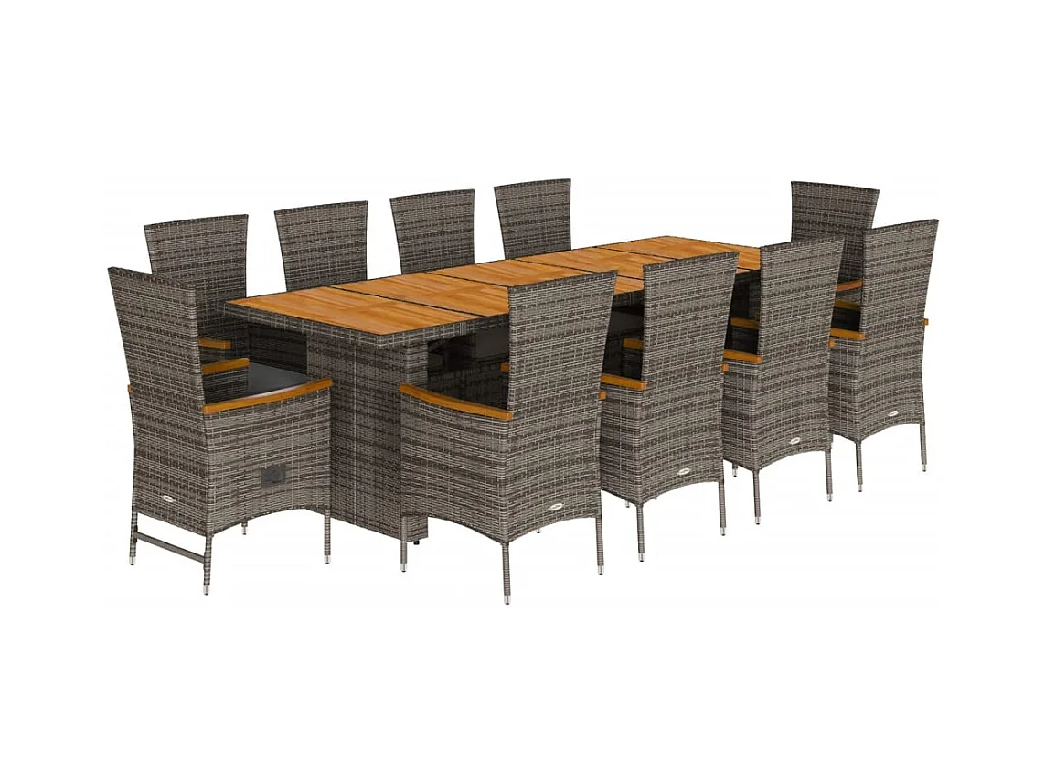 Set da Pranzo da Giardino 11pz con Cuscini in Polyrattan Grigio
