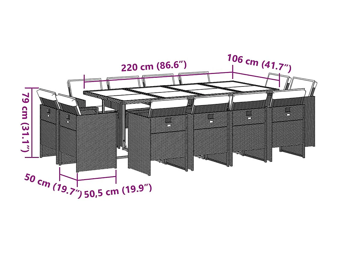 Set da Pranzo da Giardino 13pz con Cuscini Grigio in Polyrattan