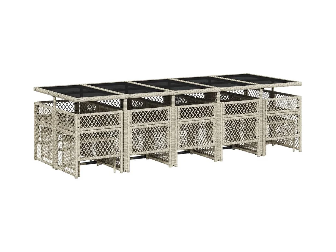 Set Pranzo Giardino 11pz con Cuscini Grigio Chiaro Polyrattan