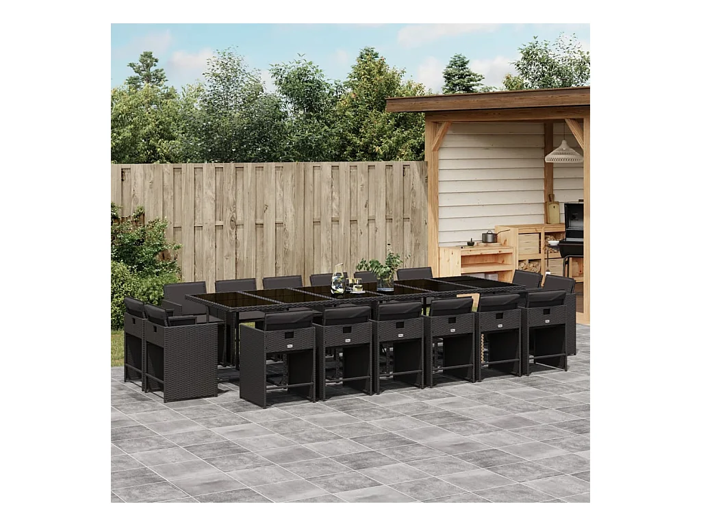 Set da Pranzo da Giardino 17 pz con Cuscini Nero in Polyrattan