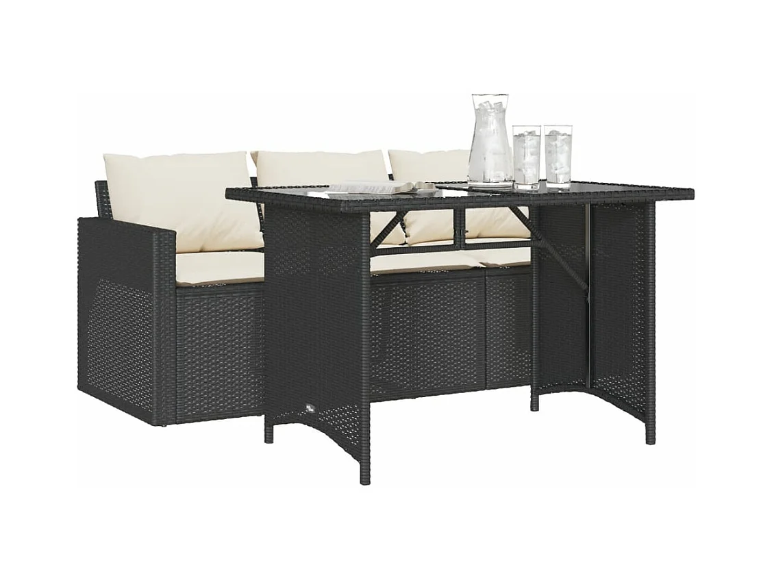 Set da Pranzo da Giardino 3 pz con Cuscini Nero in Polyrattan