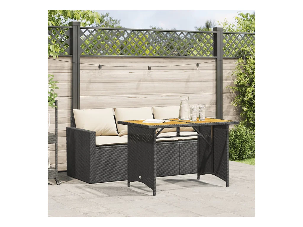 Set da Pranzo da Giardino 3 pz con Cuscini Nero in Polyrattan